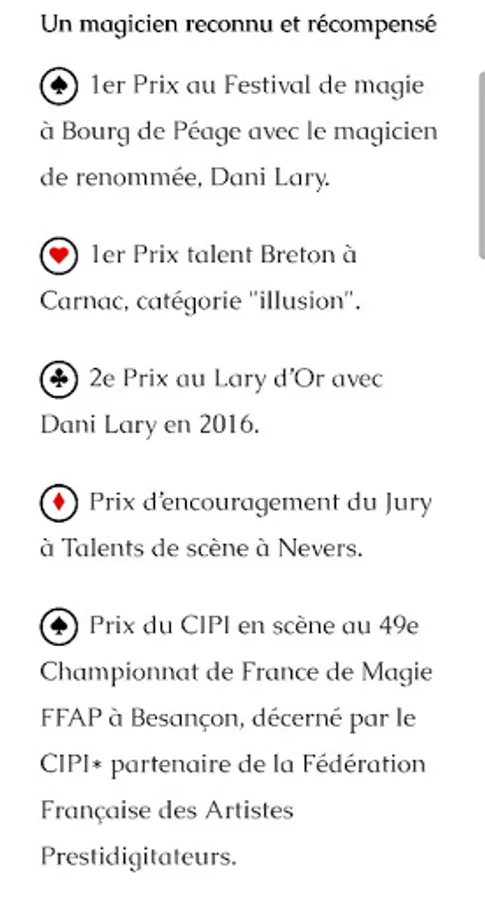 - 1st Prize at the Magic Festival in Bourg de Péage with the renowned magician, Dani Lary.