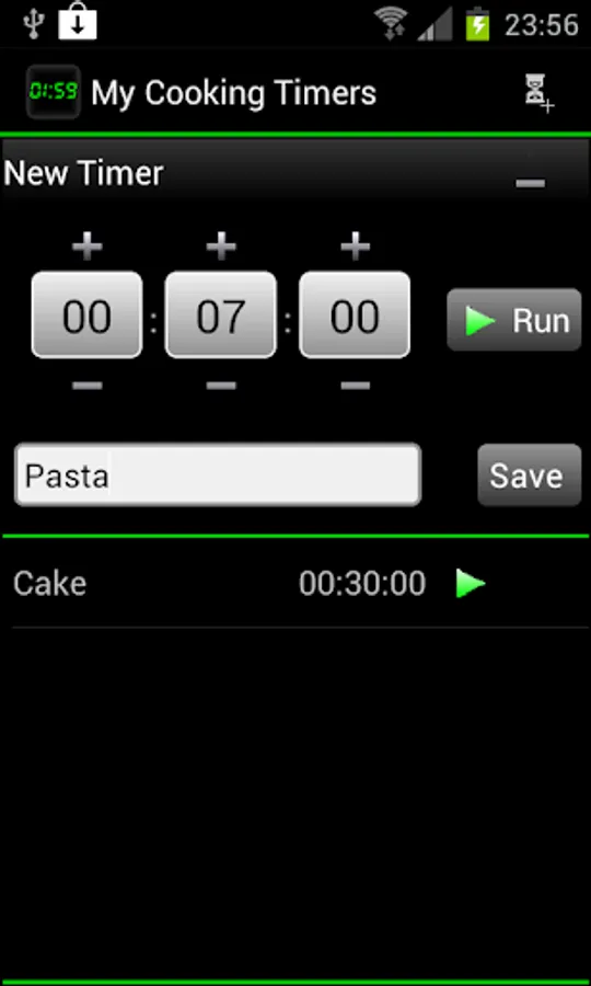 My Cooking Timers allows to save some timers and run them when you are cooking your favorite recipes. The alarm will ring when the time has elapsed.