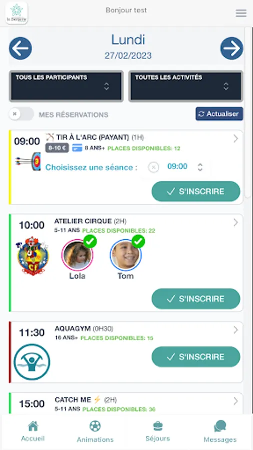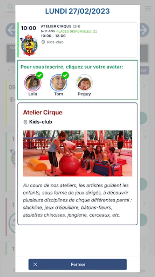 - Register your children in the mini-club (you will be automatically notified as soon as your children arrive or leave the mini-club, and much more...)