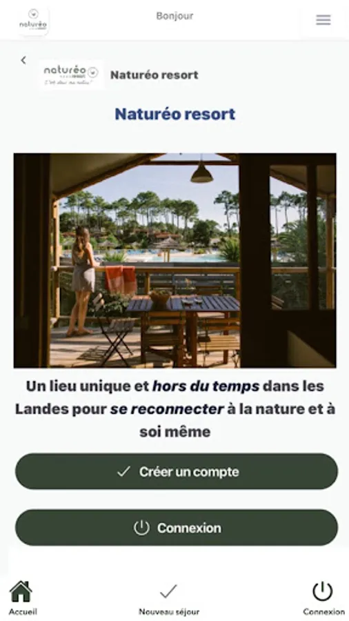 The Naturéo Resort application is the essential companion for your holidays in our Naturéo campsite, a unique and timeless place in the Landes to reconnect with nature and with oneself.
