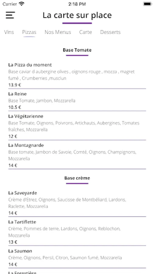 - Card module on site: no need for a menu, your customers can consult your card directly from the application