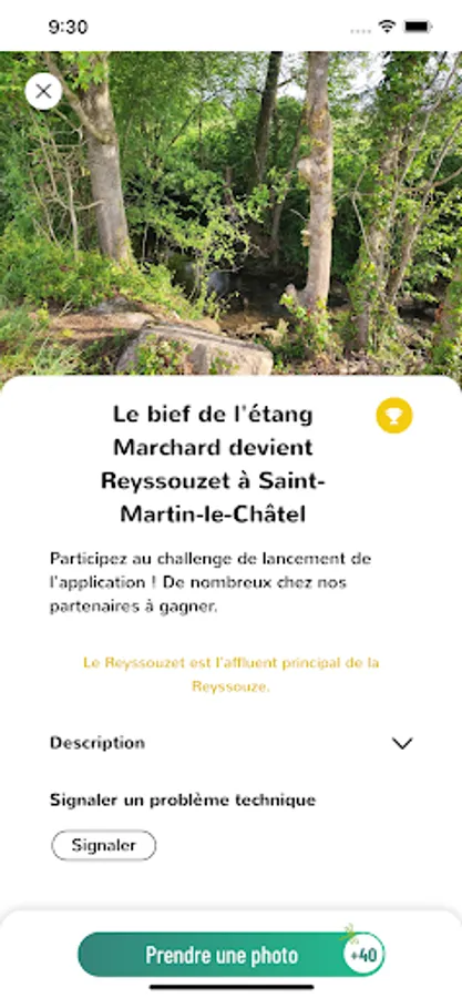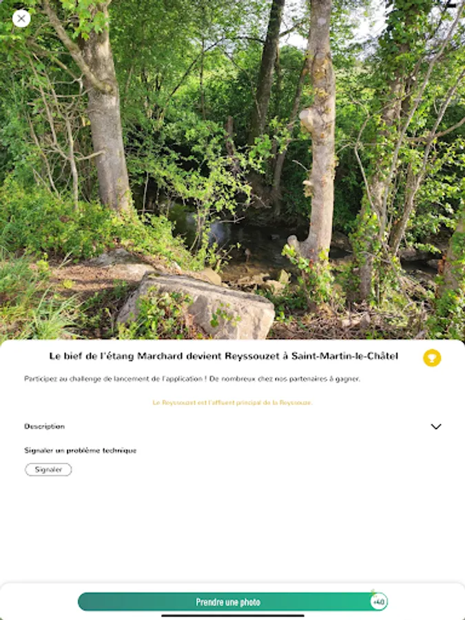 First of all, it allows you to actively contribute to the collection of information on terminals located near La Reyssouze. You can capture and share photos of these places, and answer questions about the environment around them. Your contributions will help us better understand and preserve this exceptional natural heritage.