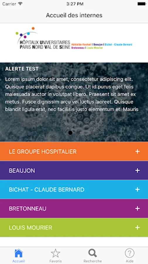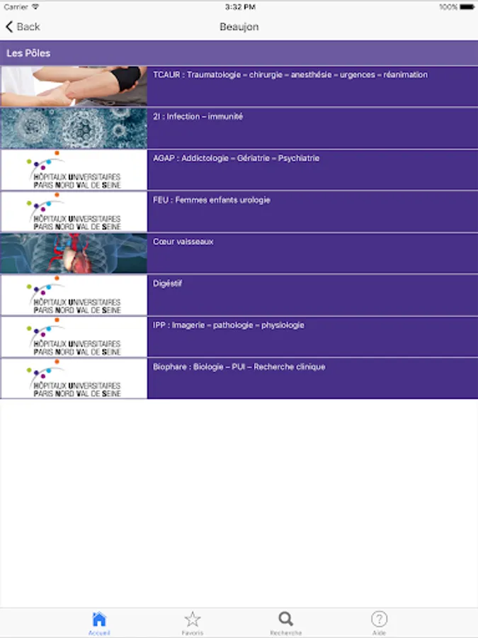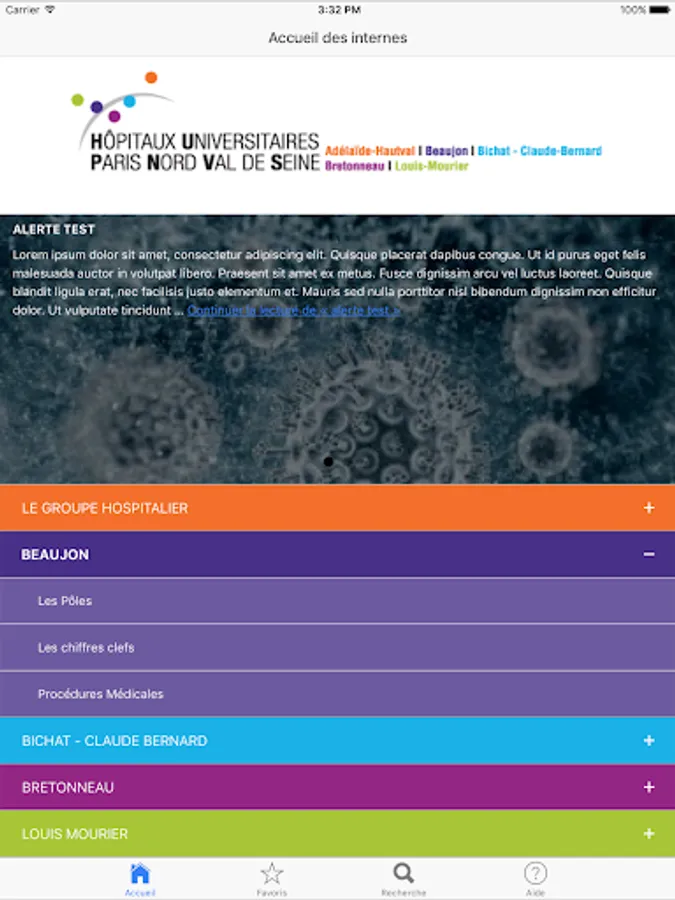 Application for doctors group APHP North University of Paris Assistance Publique - Hôpitaux de Paris (AP-HP), including the Beaujon Hospital Bichat-Claude Bernard, Bretonneau and Louis MOURRIER.