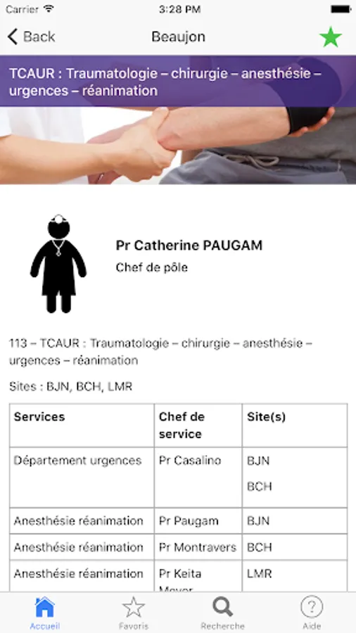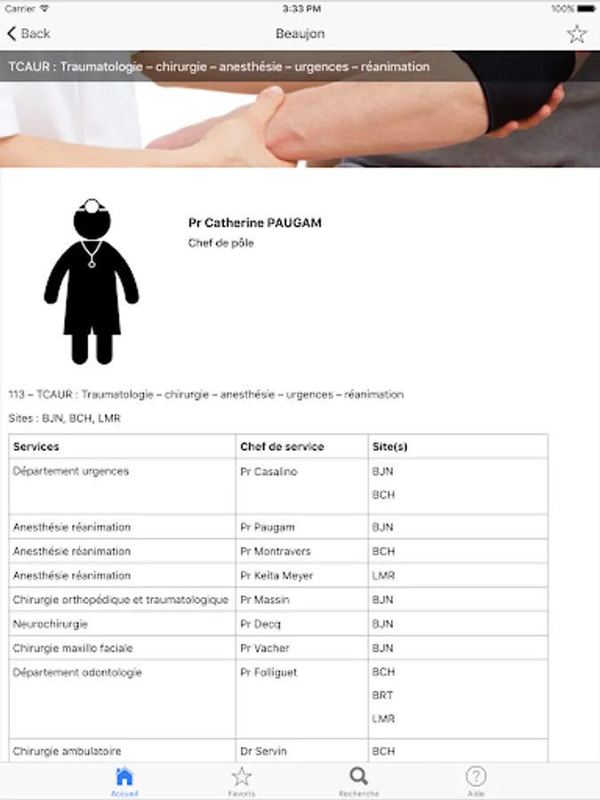 This application uses the host information, the directory and the most commonly used protocols. It will eventually replace paper often incomplete and obsolete documents, especially for newcomers especially younger (internal) that change clerkship every 6 months. The content of this application will be regularly updated and enriched with new treatment protocols approved by the medical community to our hospital group. We want to make a practical and indispensable tool. This project falls within the framework of a desire to APHP to build tools using the modern means of communication and unavoidable as are the applications used via smartphones.