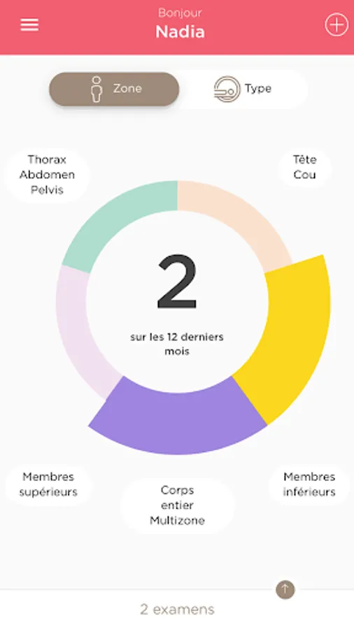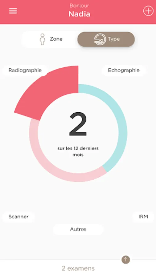 - record your exams by anatomical zone (head, neck, thorax, abdomen, upper limb, lower limb) and by type of examination (radiography, scanner, MRI, ultrasound, nuclear medicine),