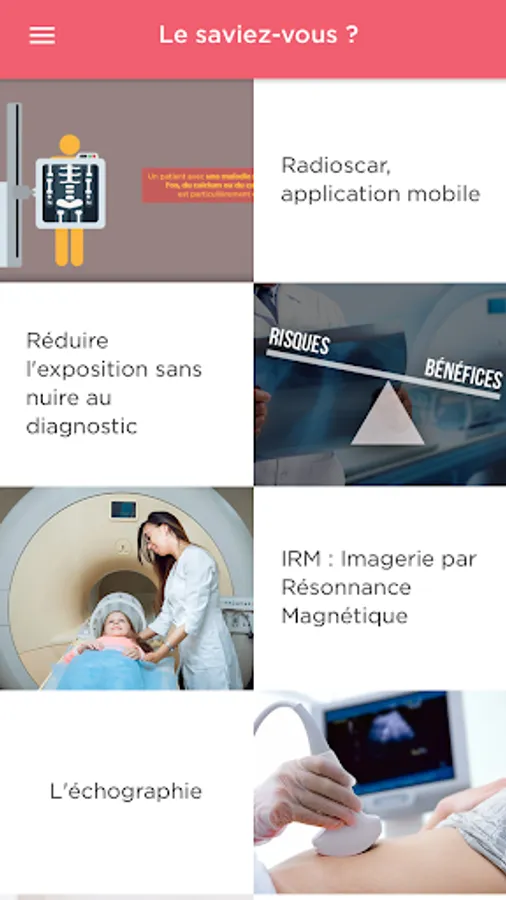 - find information on the different types of medical imaging exams and the most common questions related to exposure to ionizing radiation in the "Did you know" section.