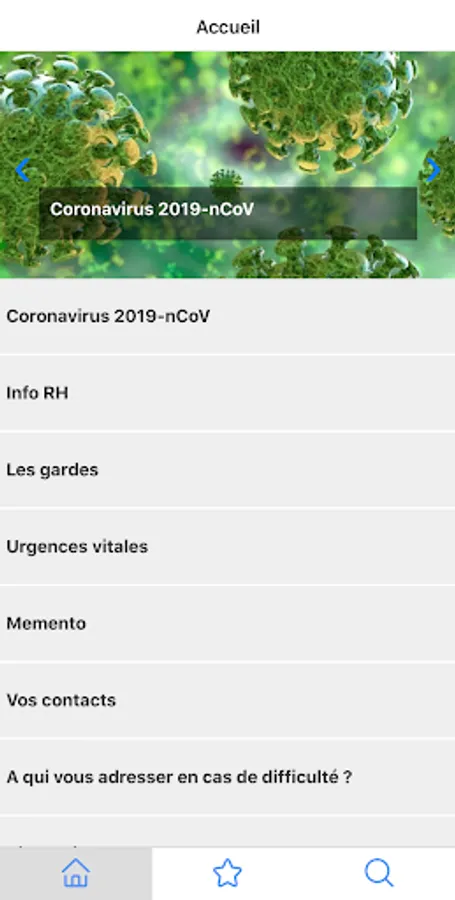 This application contains the most frequently used reception information, directory and protocols. It will eventually replace paper documents that are often incomplete and quickly obsolete, especially for newcomers and especially the youngest (interns) who change hospital placements every 6 months. The content of this application will be regularly updated and enriched with new treatment protocols validated by the medical community of our hospital group. We want to make it a practical and essential tool. This project is part of a desire of the APHP to build tools using the modern and essential means of communication that are the applications usable via Smartphones.