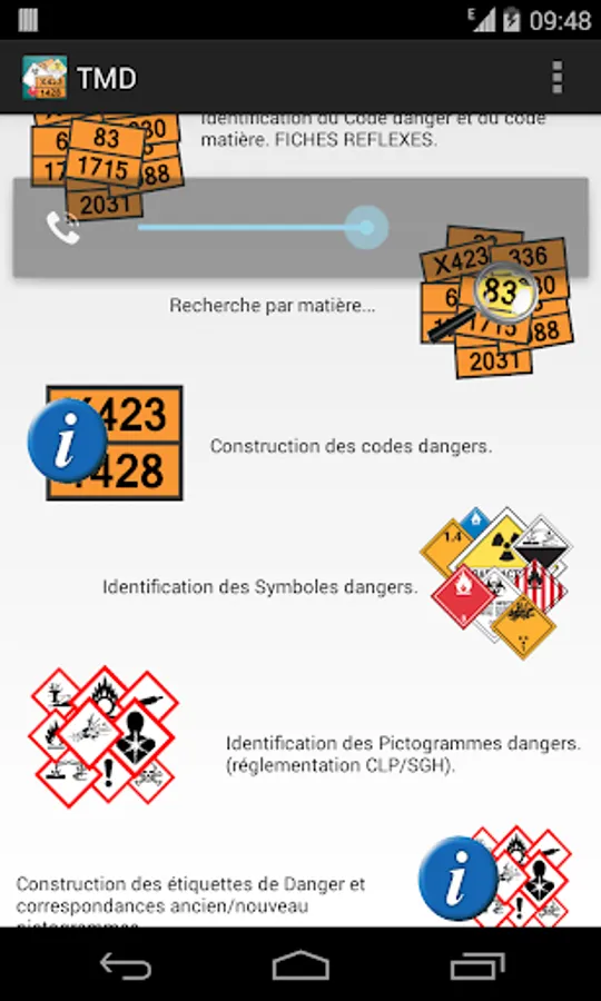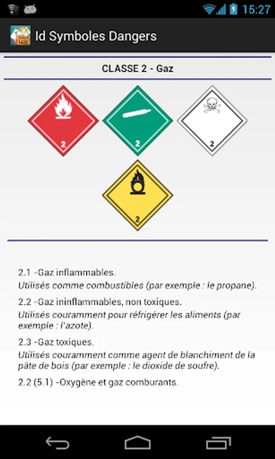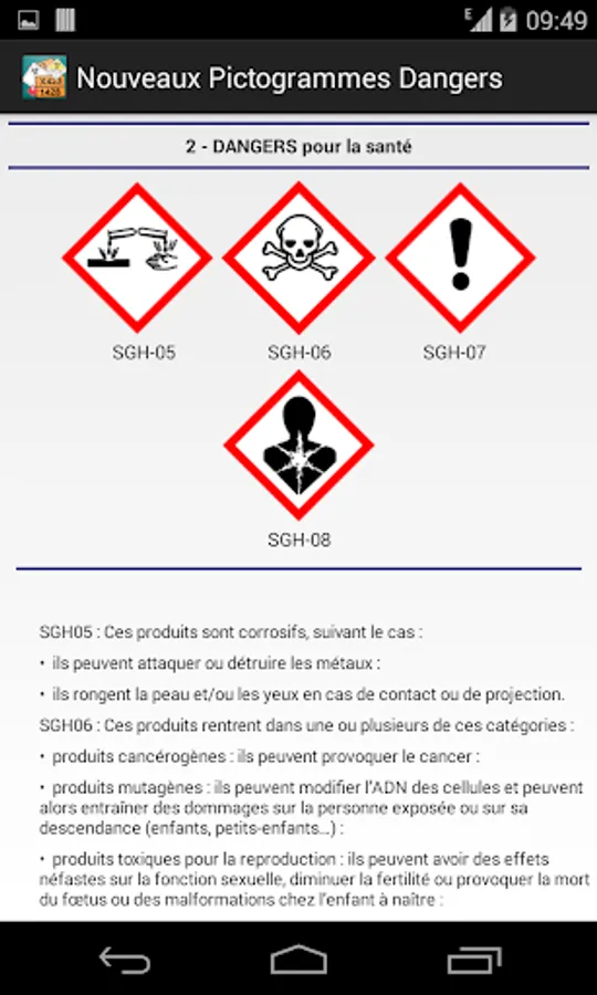 This application also allows you to decrypt hazard pictograms symbol (Classes 1 through 9)