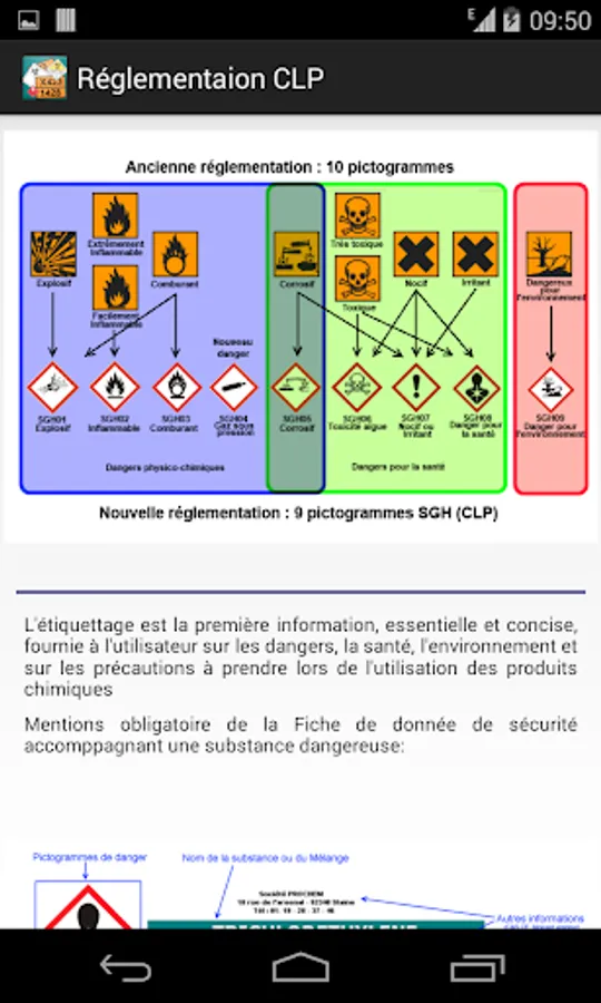 It also helps to decipher the new pictograms CLP / GHS present on chemical and binding 2015 products.