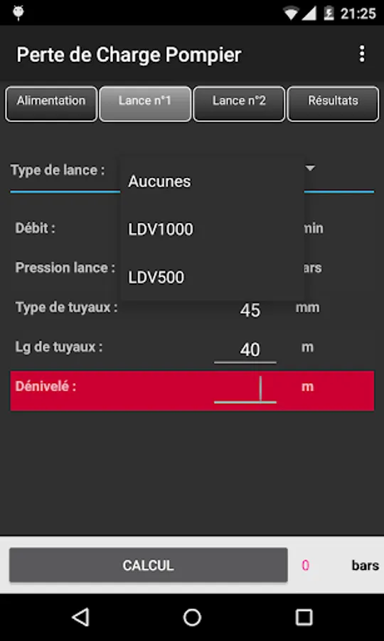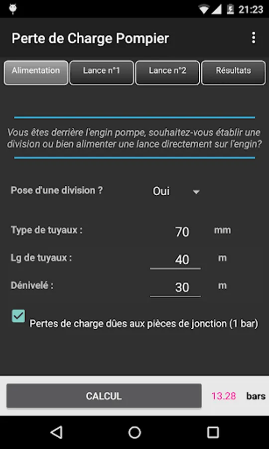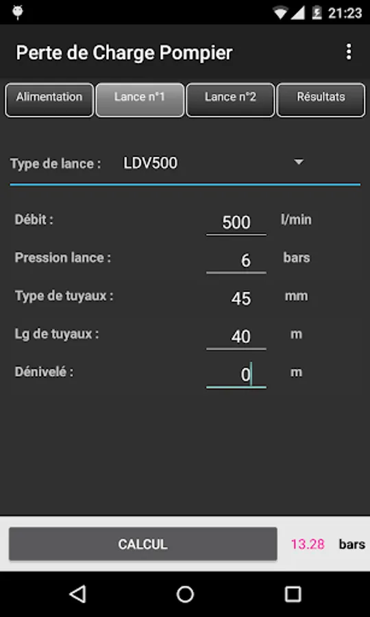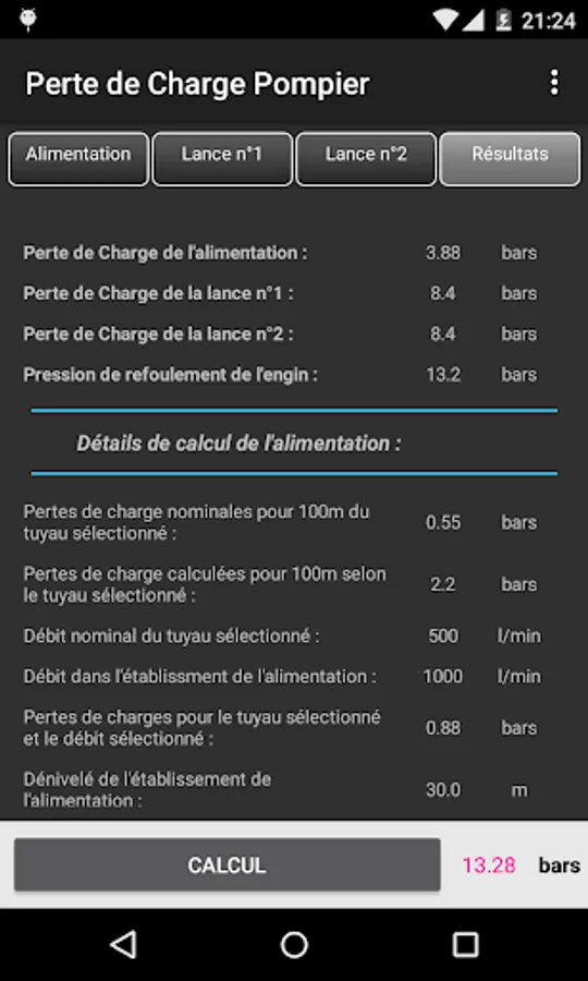 This application allows you to quickly calculate pressure losses generated in hydraulic hoses institutions firefighters.