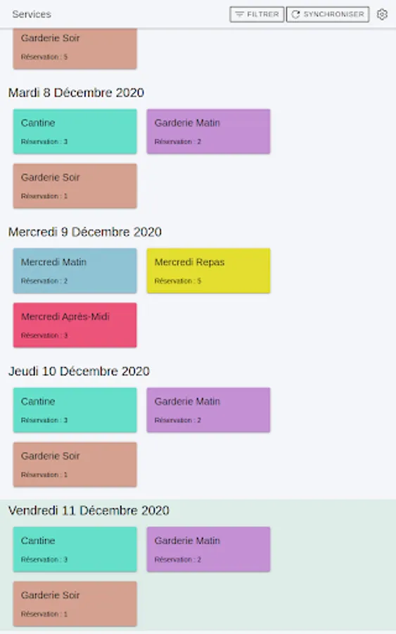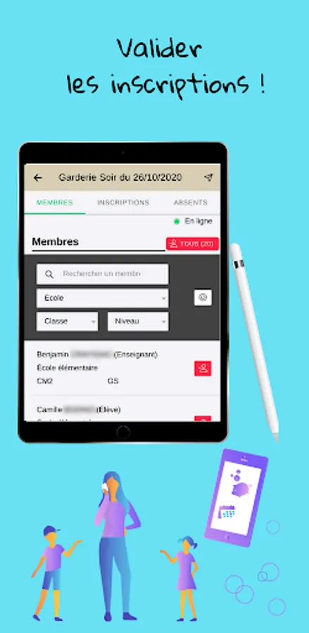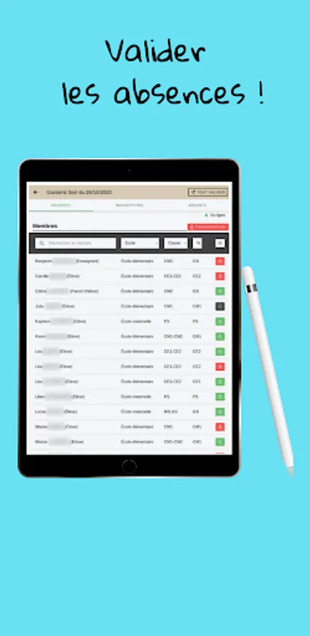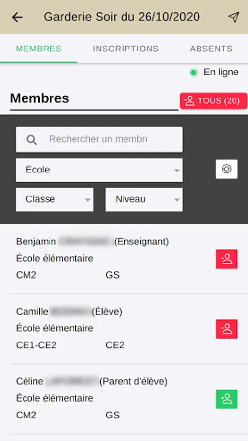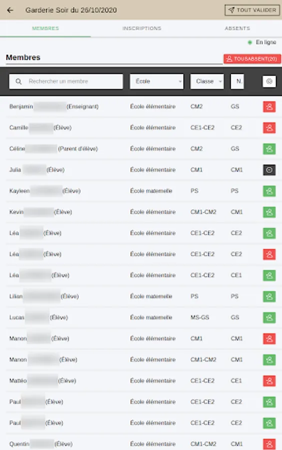 You can consult the list of registrants for your canteen, daycare / extracurricular services and leisure center on Wednesdays and holidays. The ARG Family Application allows you to filter by school, grade level and class, you will view the students enrolled or not and can quickly check if the reservation has not been made or uncheck if the child is absent on D-day.
