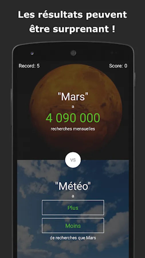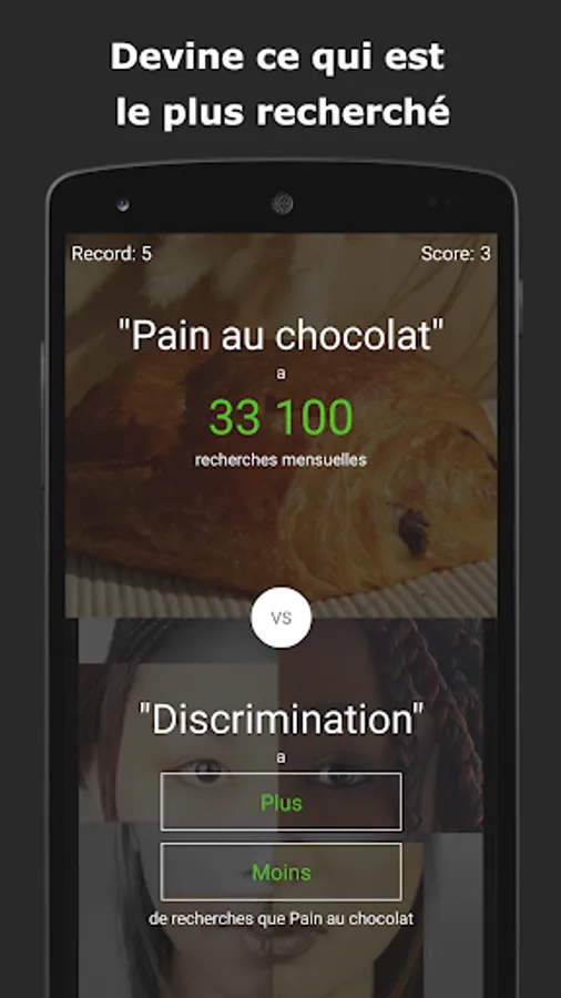 This game is very simple (and even addicting), you just have to choose which term is the most searched on Google. To do this, you must select "More" or "Less". The goal is to get as many good answers as possible to get the best place in the standings.