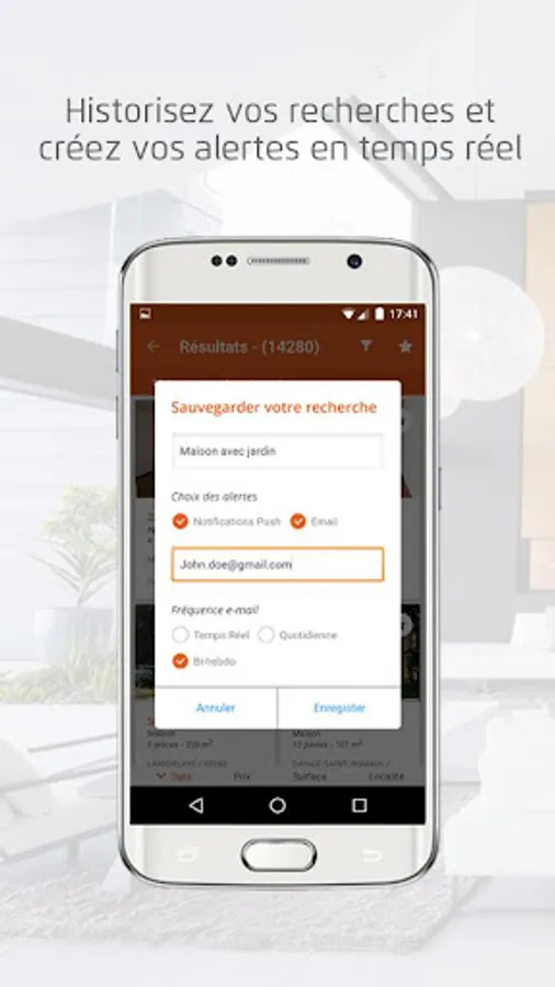 > The pushs notifications and emails that alert you in real time of new ads to your search criteria.