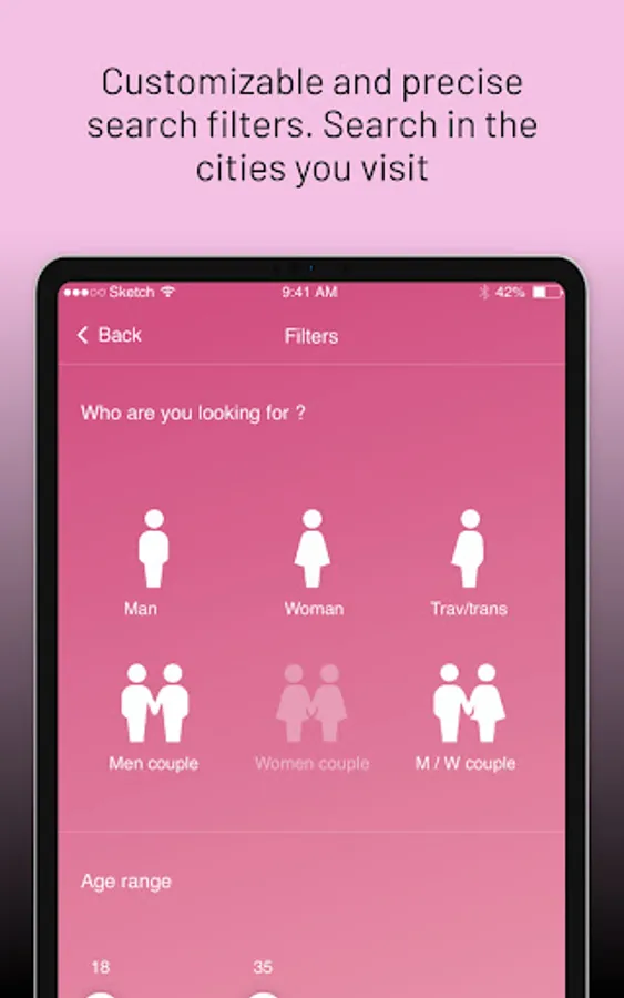 - Choose what you are looking for and you will see profile who share the same search as you (thanks to effective filters that only show you the profiles that match your search)