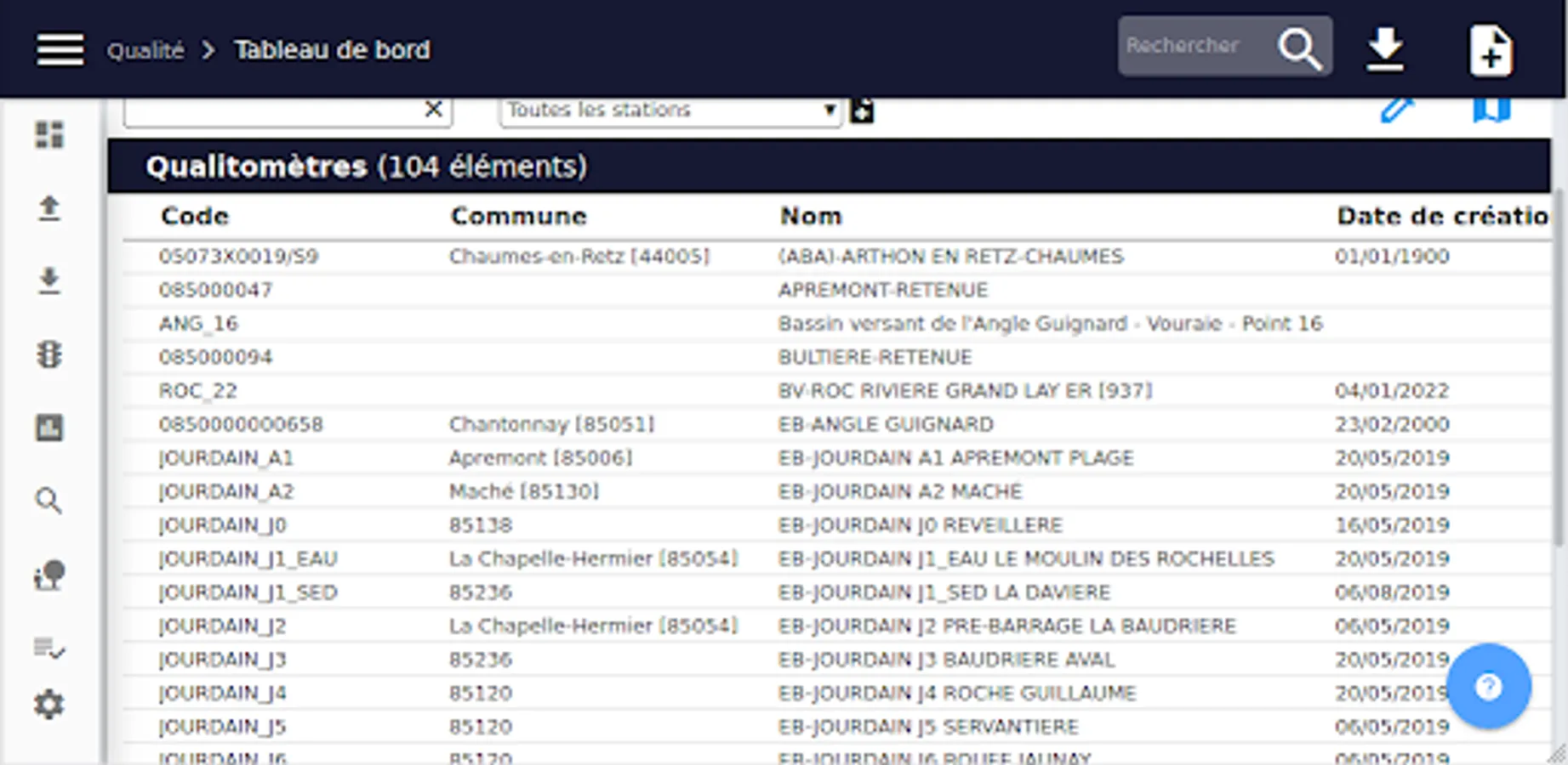 Qaptys is an application for managing environmental measurement stations: piezometer, water level meter, rain gauge, quality station, etc. It is used to monitor the life records of measurement stations and to enter manual measurements. In addition, it makes it possible to define the installations accommodating the stations: boreholes, reservoirs, catchments, STEP ... You can describe all the technical elements of the installations. The application makes it possible to define field visits, to fill in the characteristic events and to add photos.