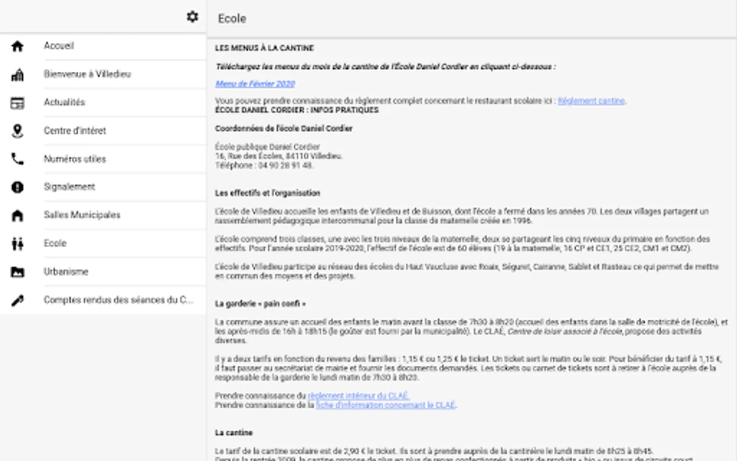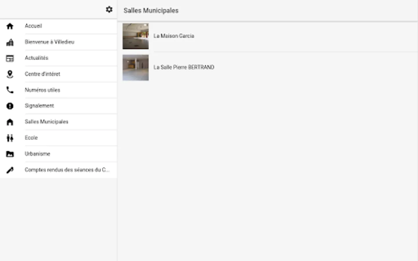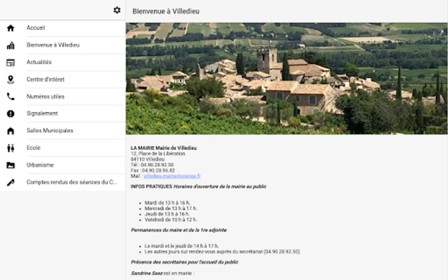 - Quickly find all the areas of interest in the Villedieu town hall, these are geolocated to allow you to access them more easily.