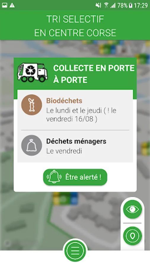 Locate the sorting station closest to you in Center Corse as well as the bio-waste collection routes door to door.