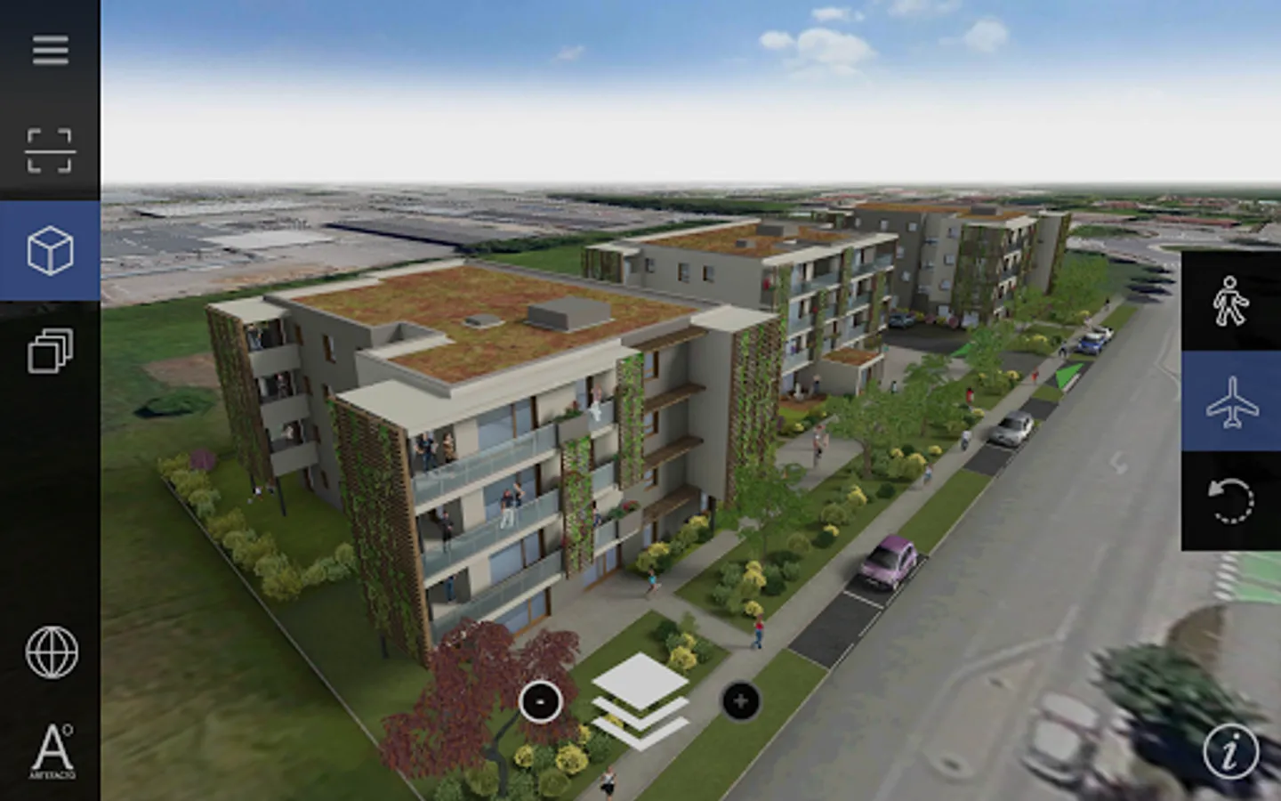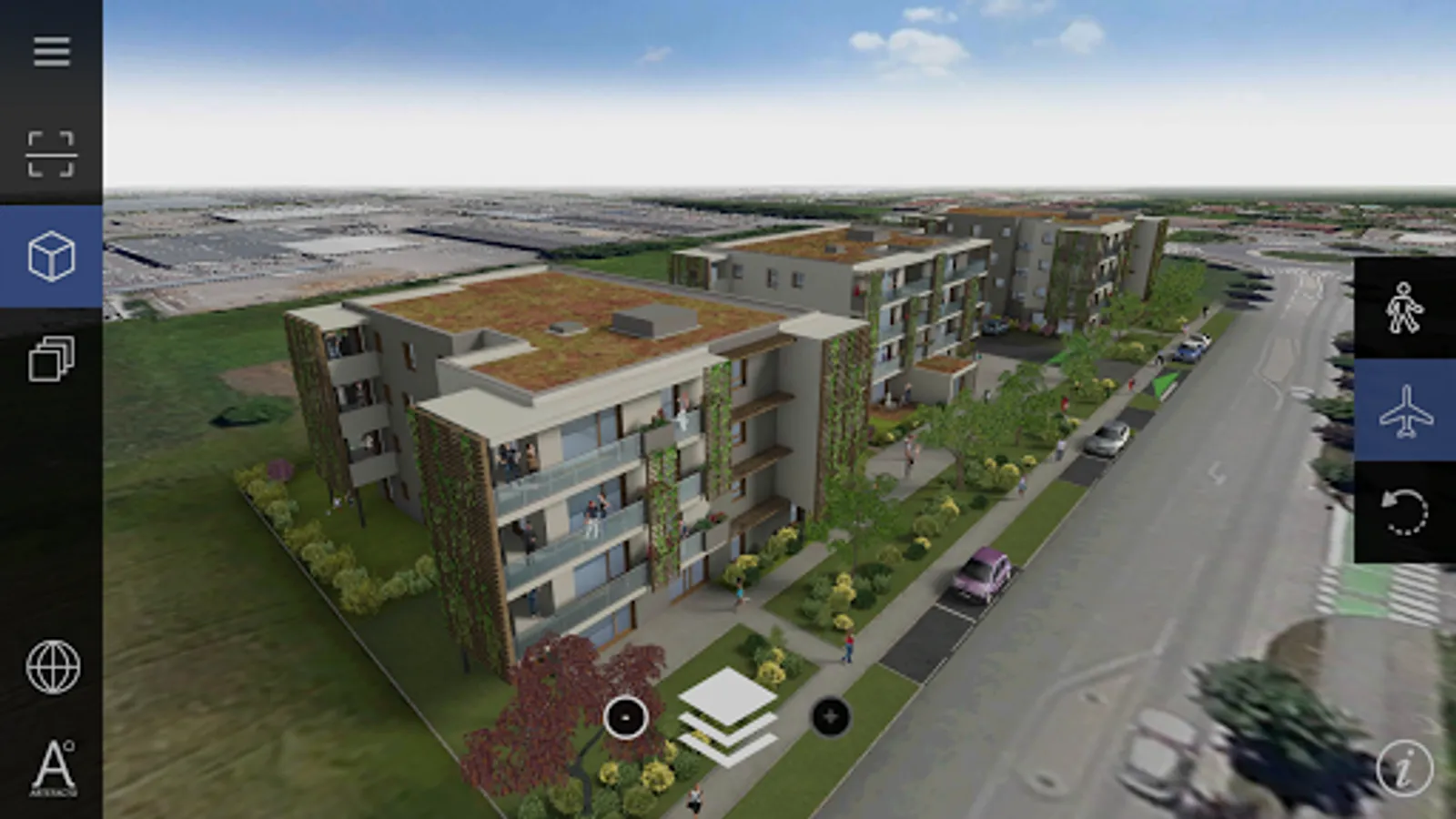 Enter a new dimension in 3D viewing, walk between buildings ... Change of space!