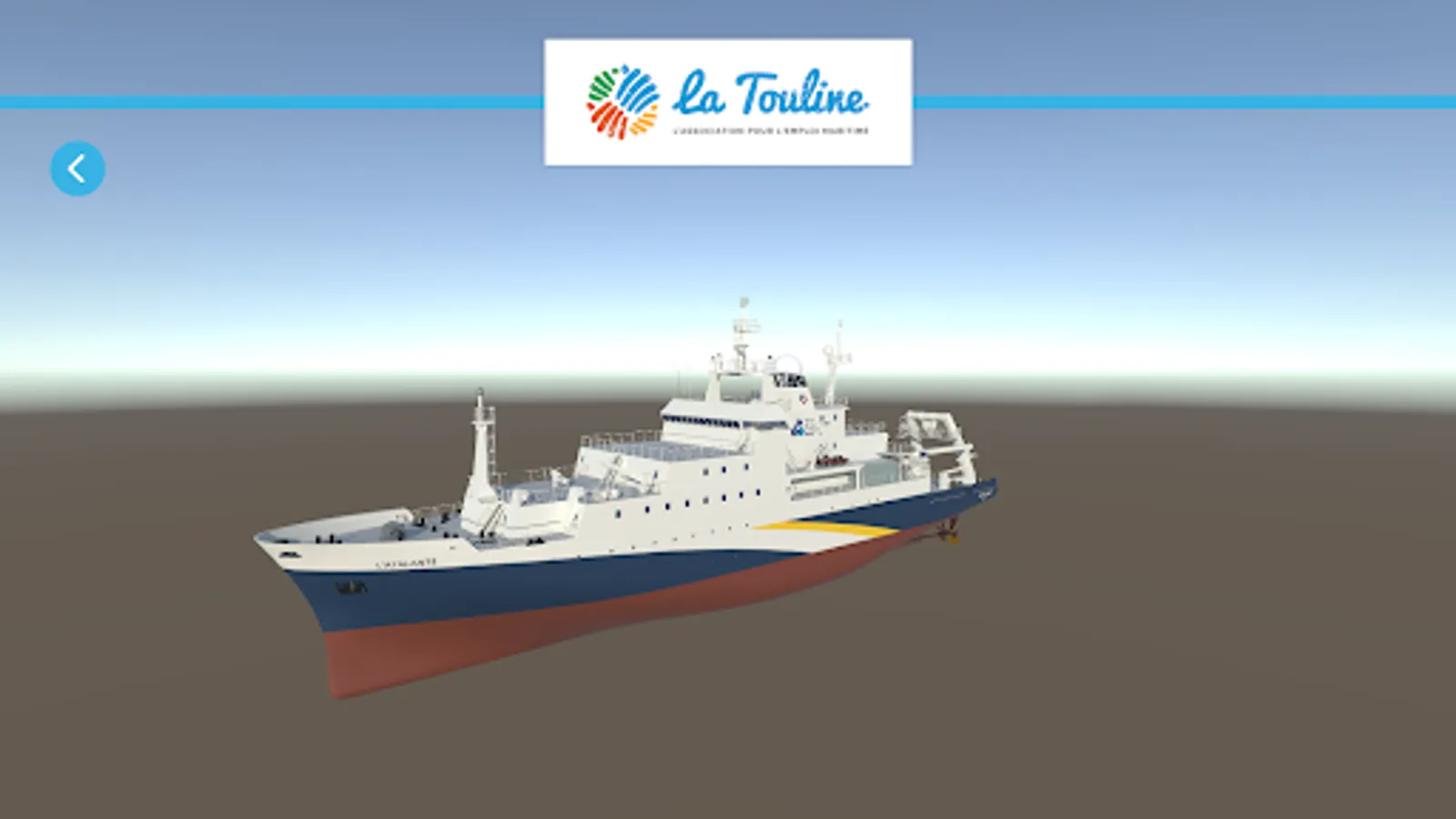 The application offered by La Touline* takes you on board the Atalante, an oceanographic vessel in the Ifremer fleet, thanks to 3D and this without leaving dry land. You will thus be able to visualize the activity on board and the trades of sailors whether on the bridge, at the maneuvering beaches, at the machine, but also the living areas (kitchen, dining room, cabin).