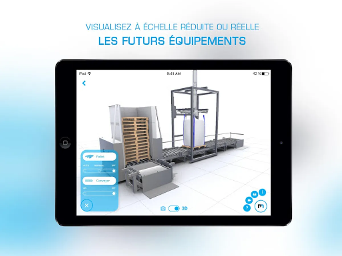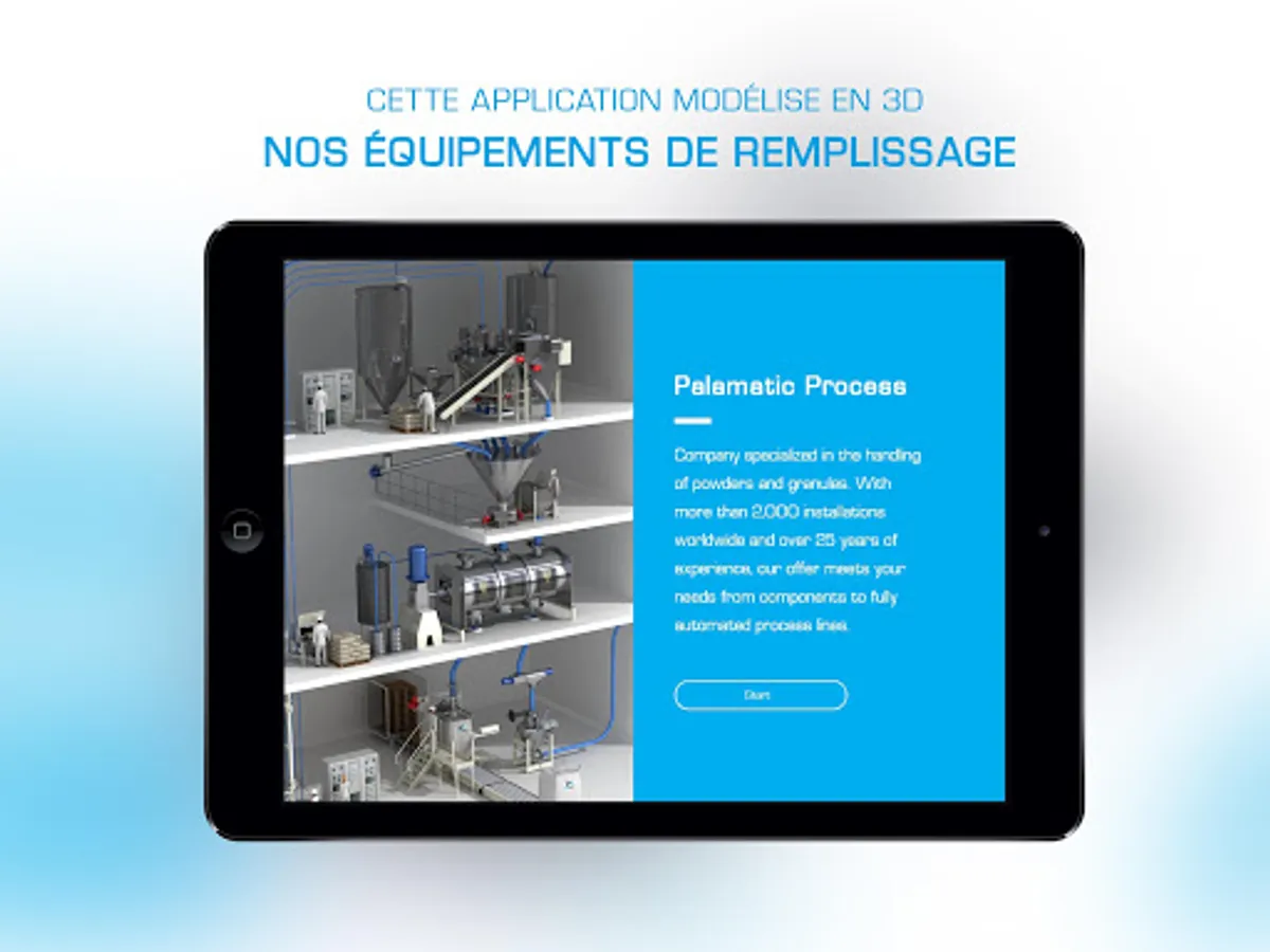 Palamatic Process makes you discover the immersive 3D. This application models in 3D our big bag filling equipment. Display with reduced or full scale your future equipment.