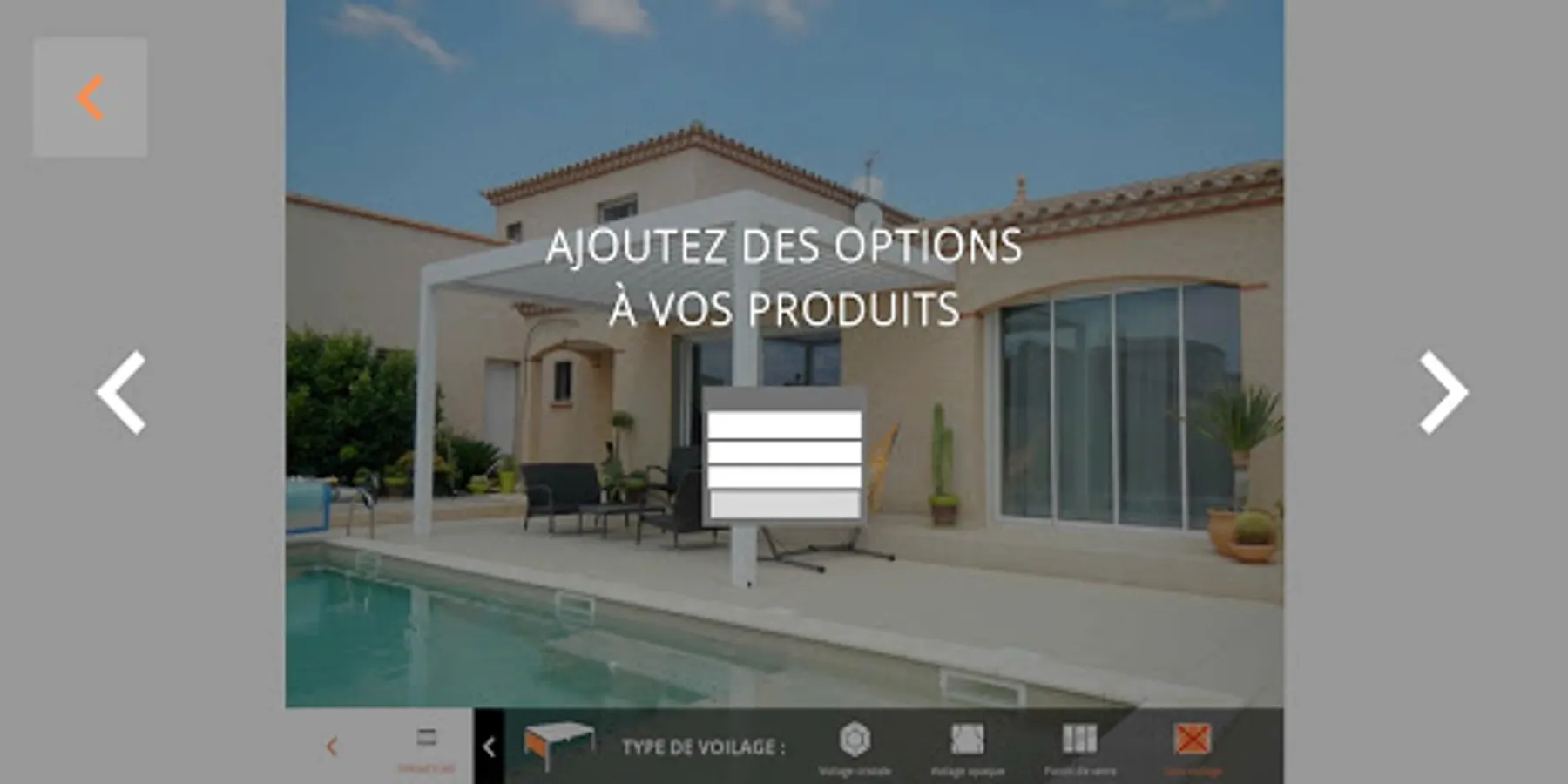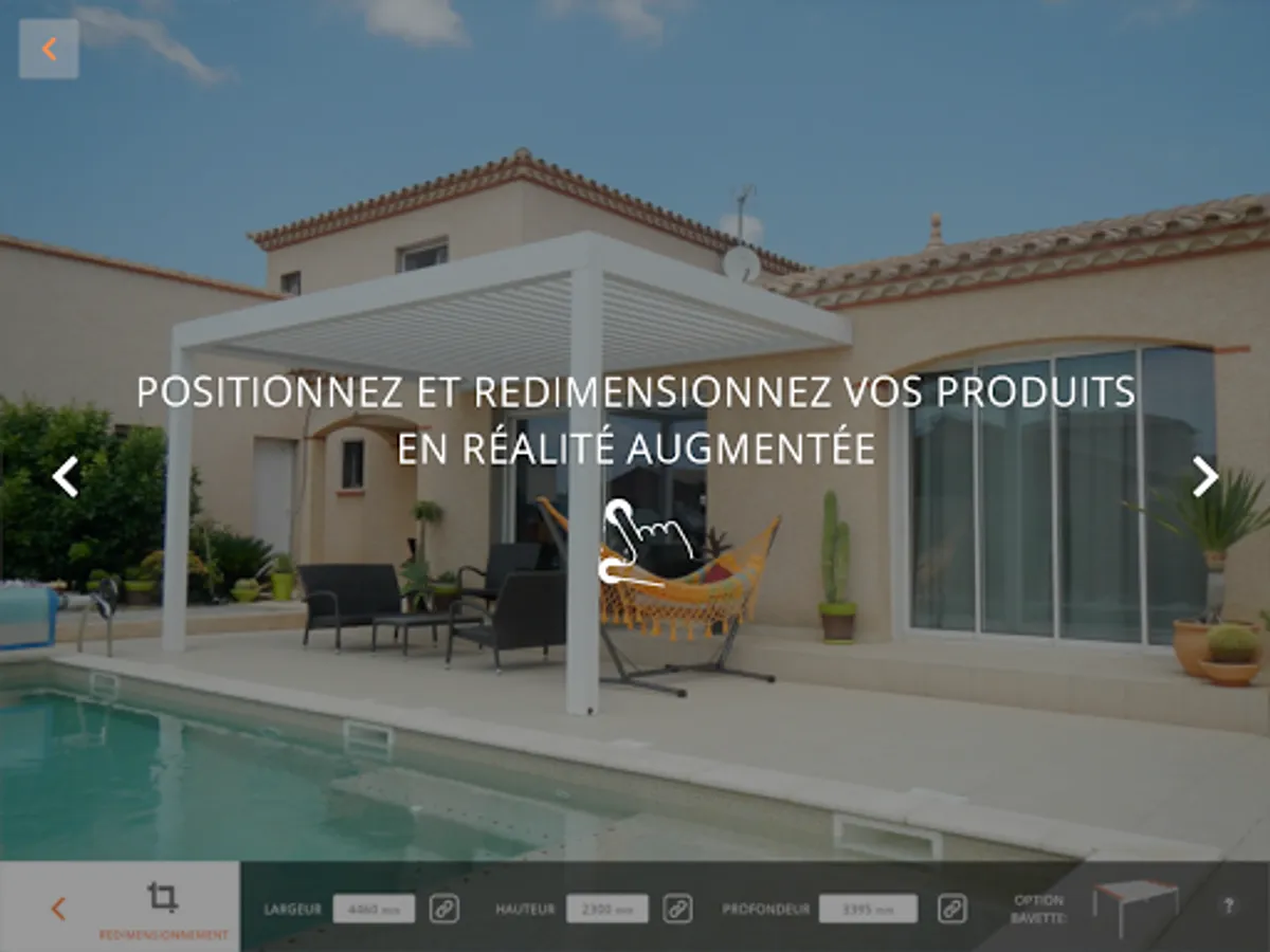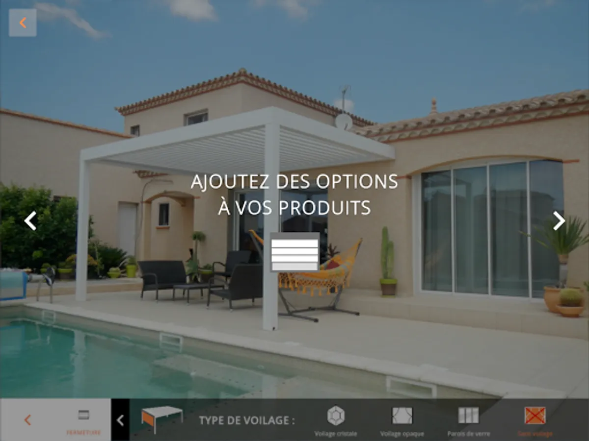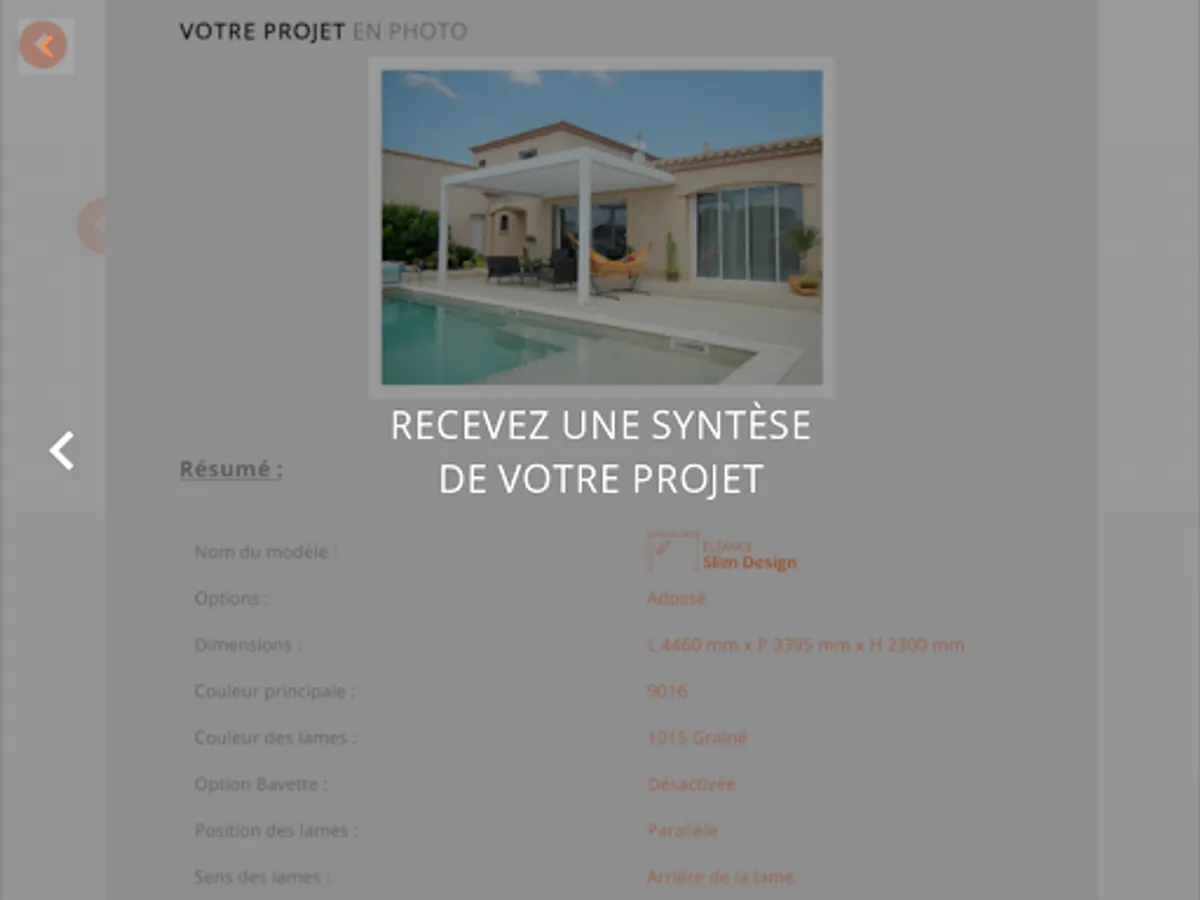 Thanks to this application offered by Si Tech Industrie, you will allow your customers to visualize very precisely what their project will look like. Take a photo of the terrace and project the future Eleance pergola in a few clicks! Define the pergola model, dimensions, options: lighting, blinds, glass walls and color, then present the project to your client. It can "walk" around or below, vary the orientation of the slats, raise or lower the blinds ... You will even be able to take a photo to illustrate your offer.