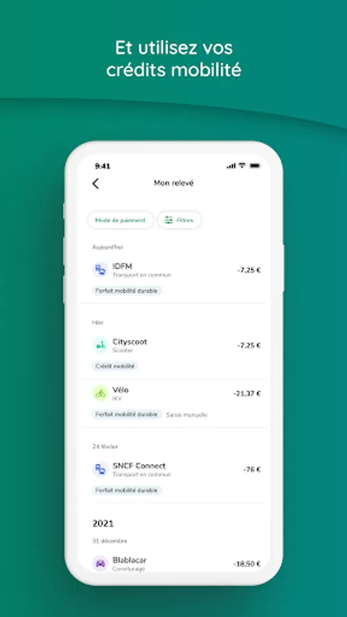 The 1st application in France which brings together daily travel solutions available to company employees, whether or not they are eligible for a company car.