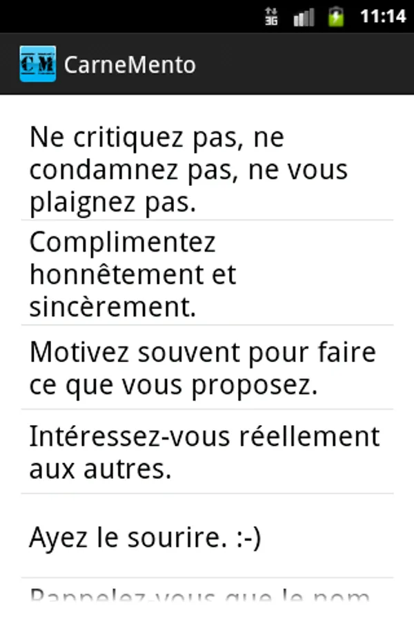 CarneMento is designed for owners or readers of the book "How to Win Friends" by Dale Carnegie or students training Communication & Leadership.