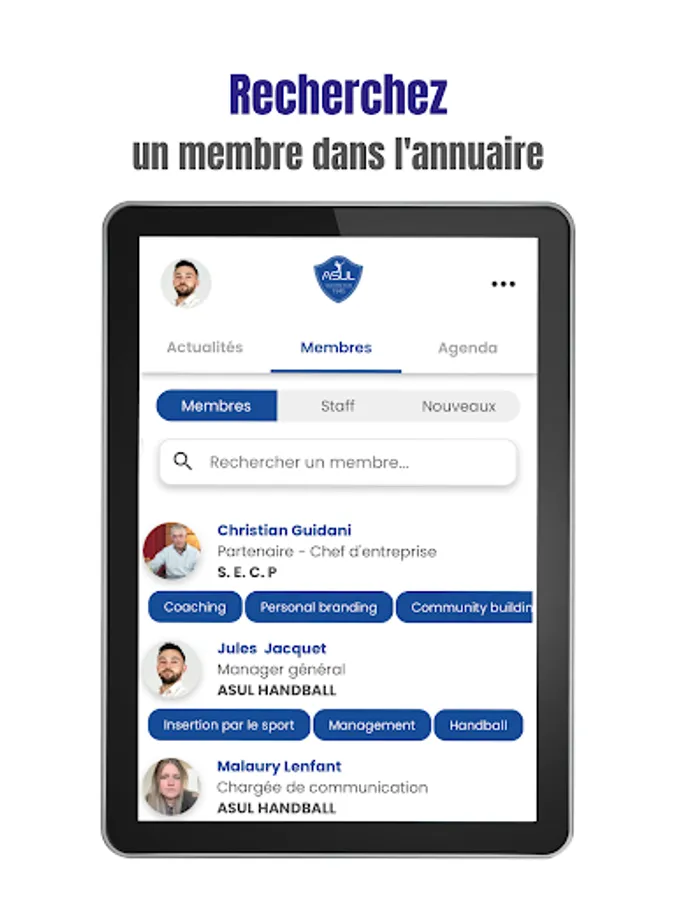 - New members: discover the profiles of new members who have joined ASUL VV HANDBALL to easily develop your network and your opportunities!