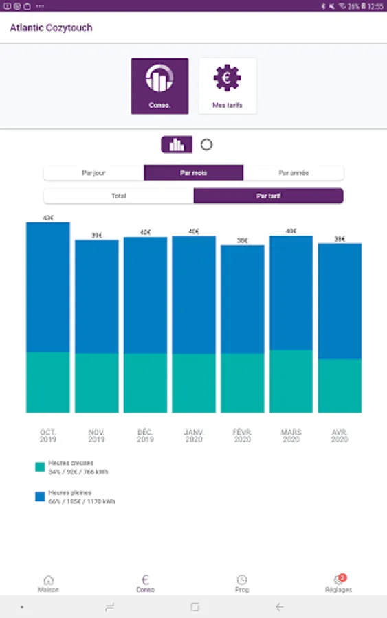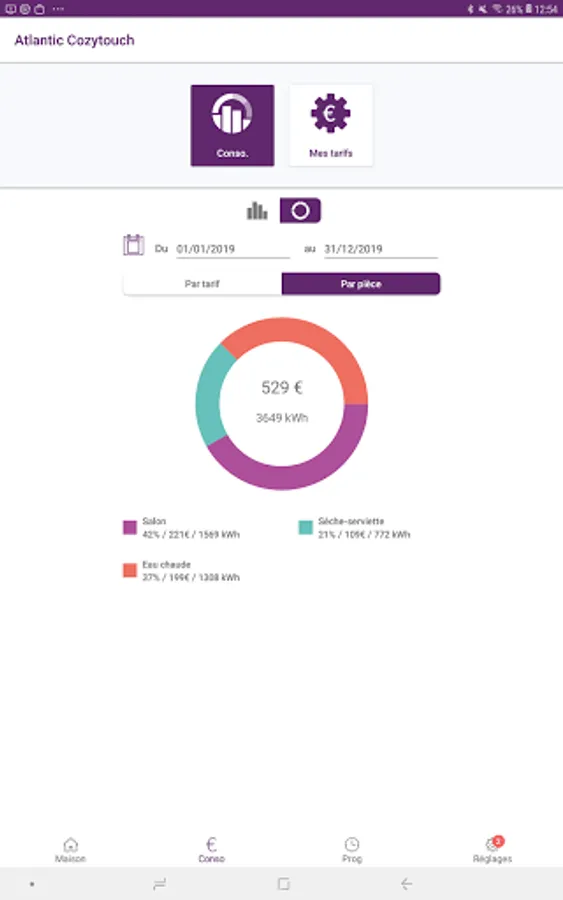 Pilot your thermal comfort and remote energy consumption through the application Cozytouch Atlantic.