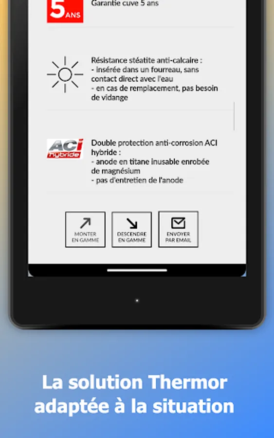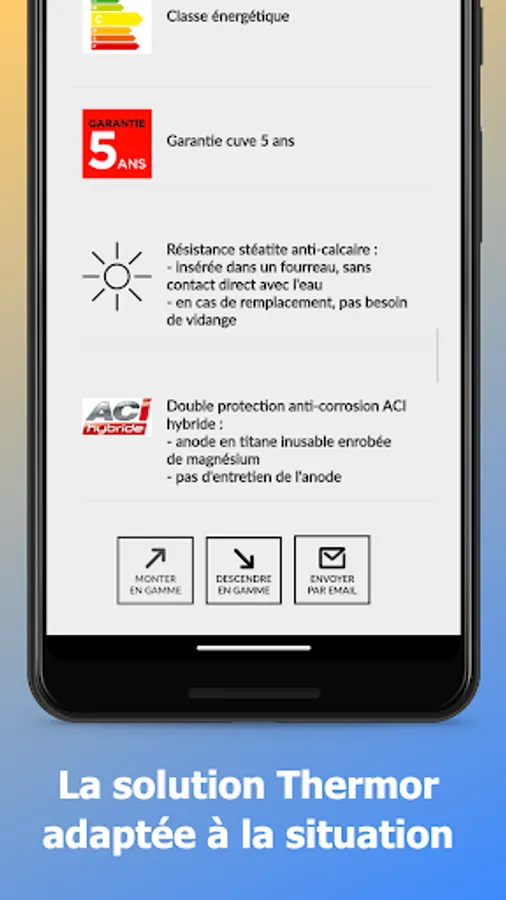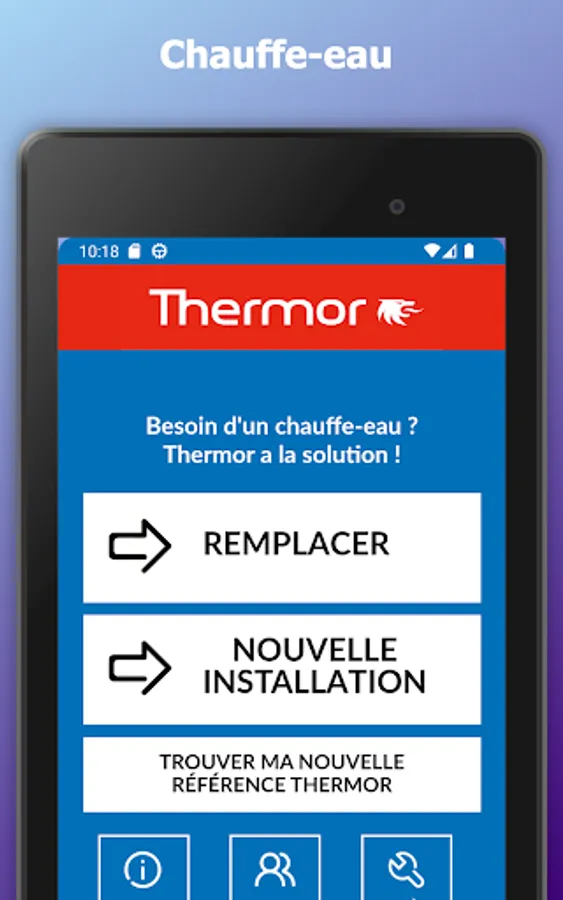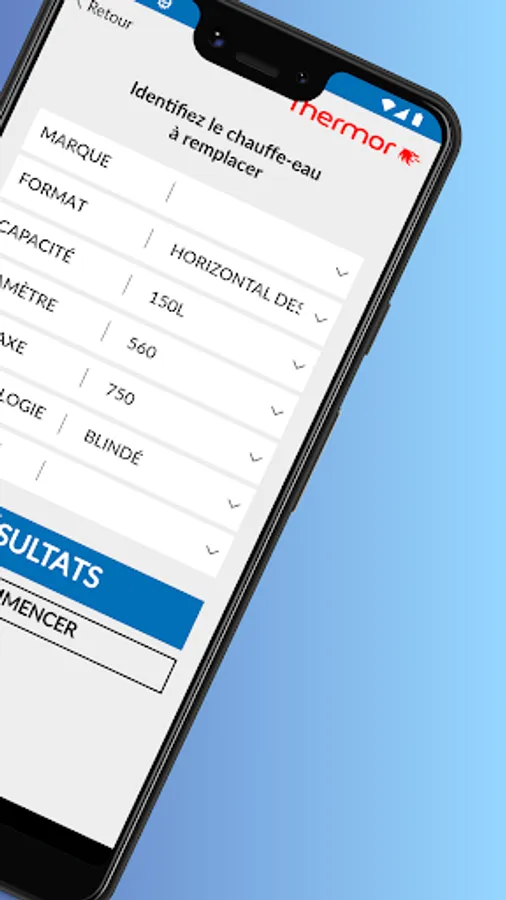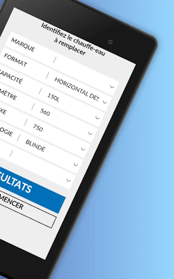 With this application you will find a few clicks water heater Thermor equivalent to the water heater you have to replace it regardless of its brand and whatever its format (wall vertical, horizontal or stable) with capacity of 50 to 300L.