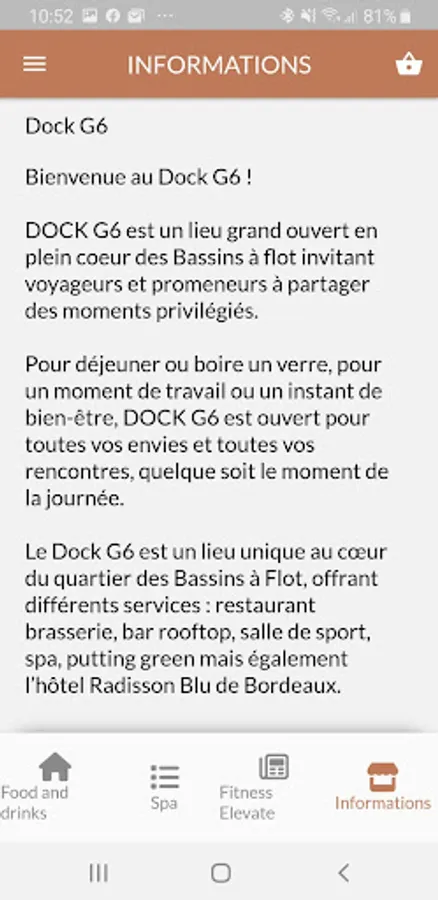 The Dock G6 is a unique place in the heart of the Bassins à Flot district, offering various services: brasserie restaurant, rooftop bar, gym, spa, putting green but also the Radisson Blu hotel in Bordeaux.