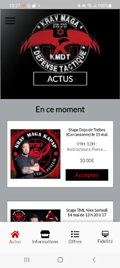 Application allowing you to receive all the latest news and courses in real time from the Krav Maga club of Mandelieu la Napoule.