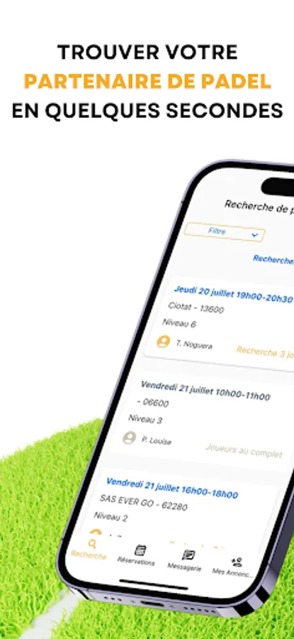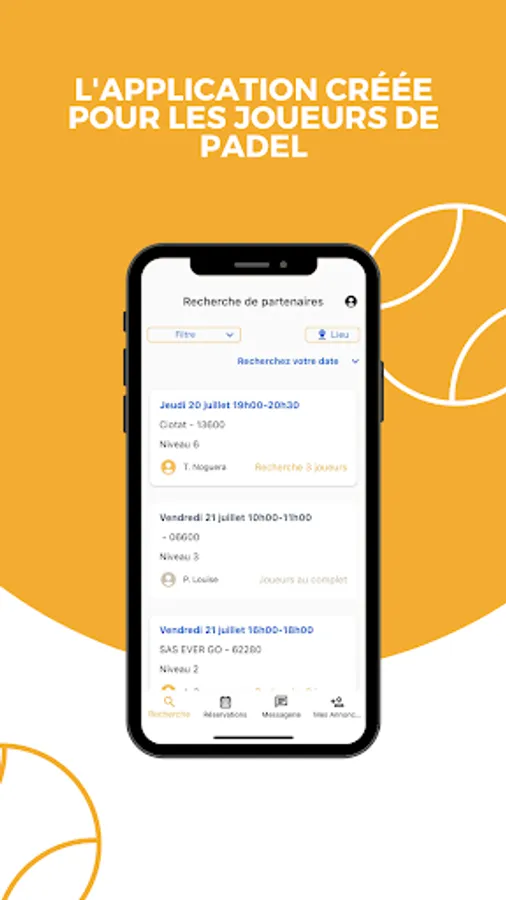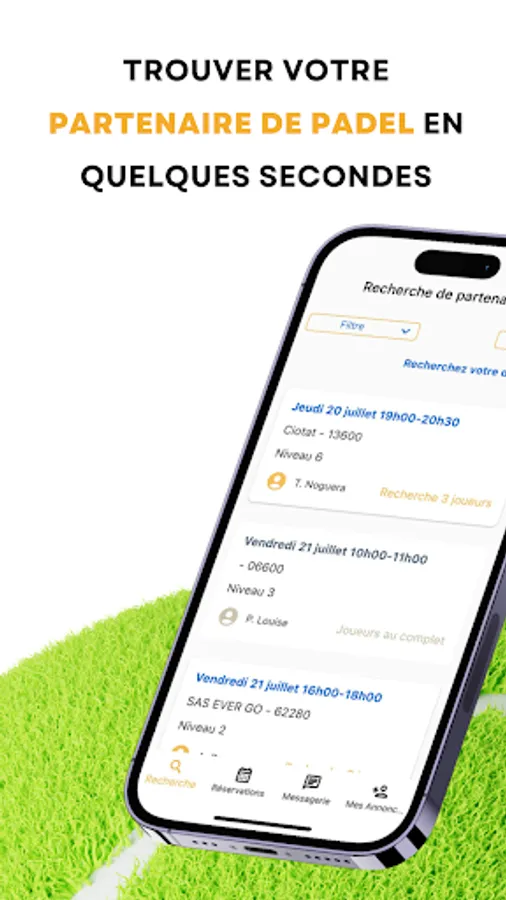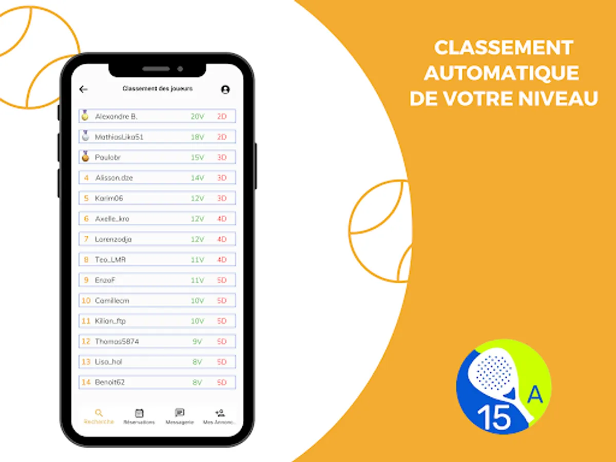 Don't let your desire to play padel be held back by the lack of partners. With 15a, easily find one or more players for a game of padel. Whether you are looking for partners for a friendly match or for intensive training, 15a is your asset!