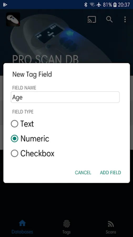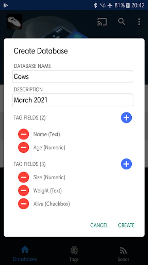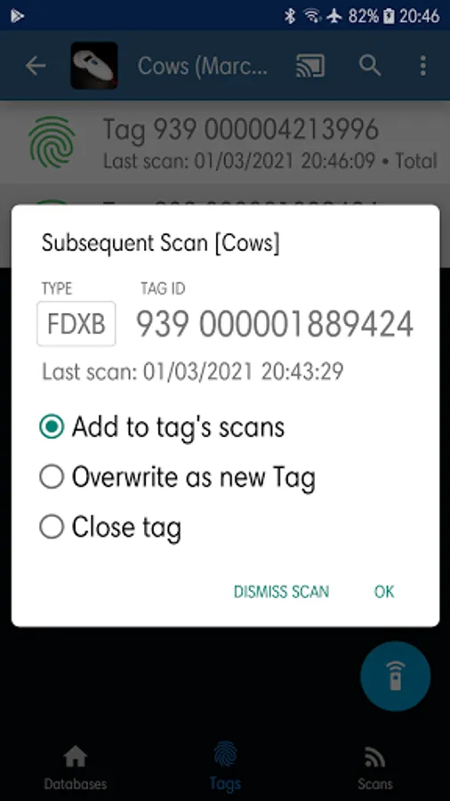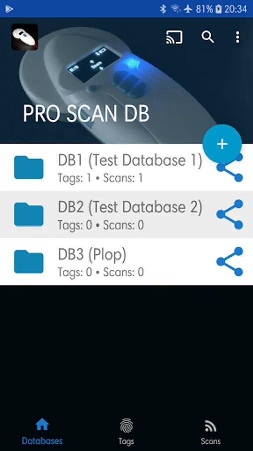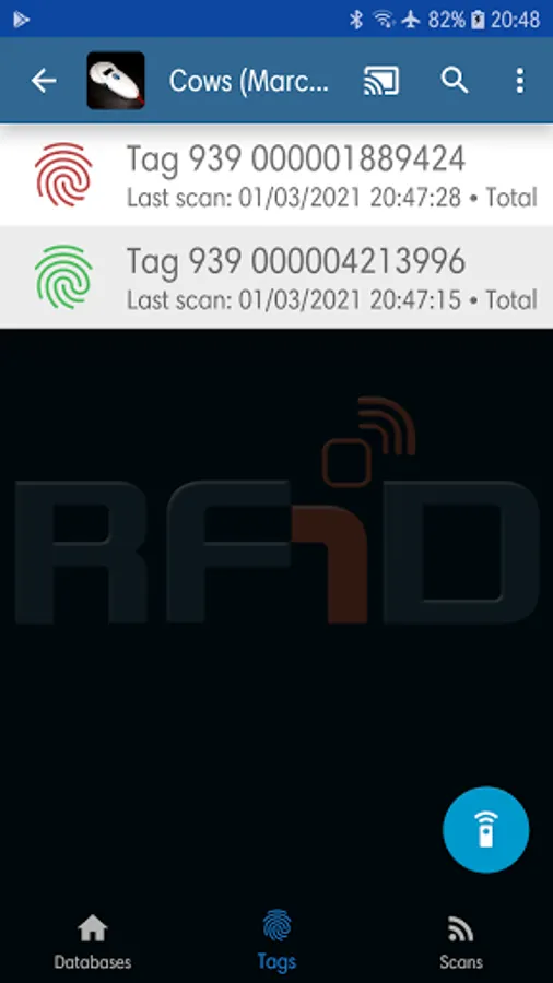 • When a scan is made on the reader, it is stored in the currently selected database, and every scans of each tags are automatically indexed under their parent tag