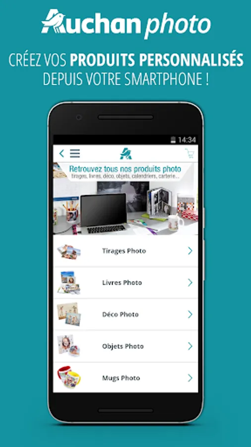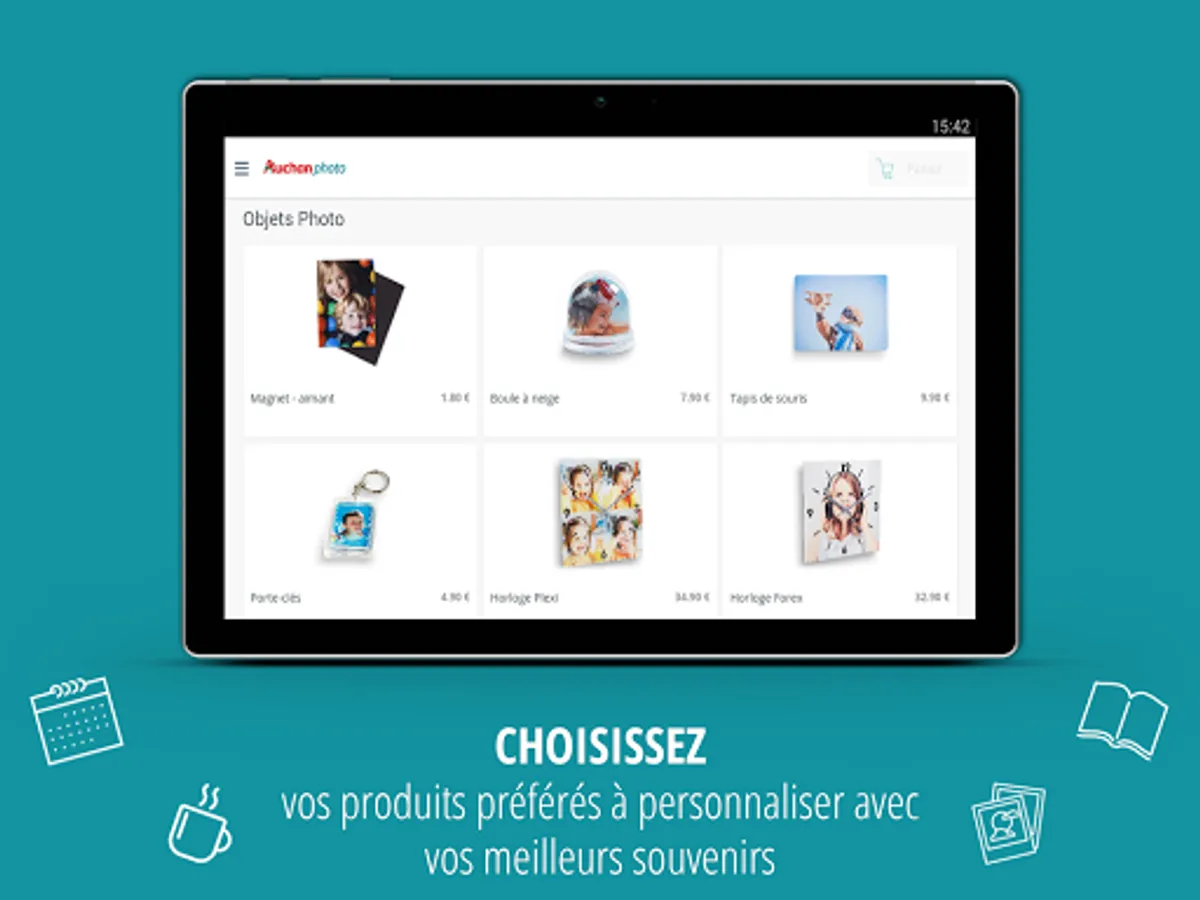 Create and order your prints, photo books and personalized products directly from your mobile phone or tablet thanks to the Auchan Photo application.