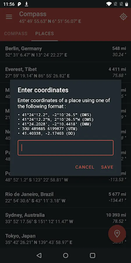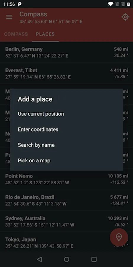 Place tracking allow you to save your current location for later find its direction from anywhere else in the world!