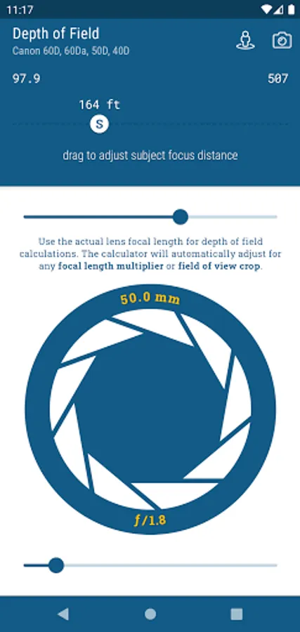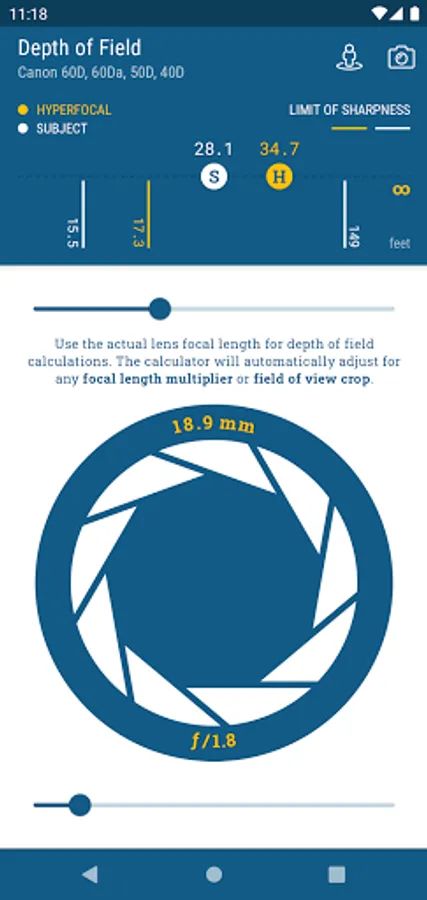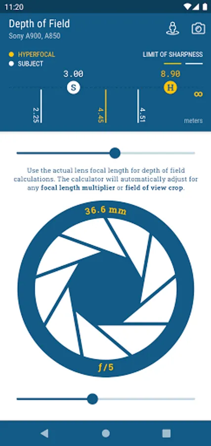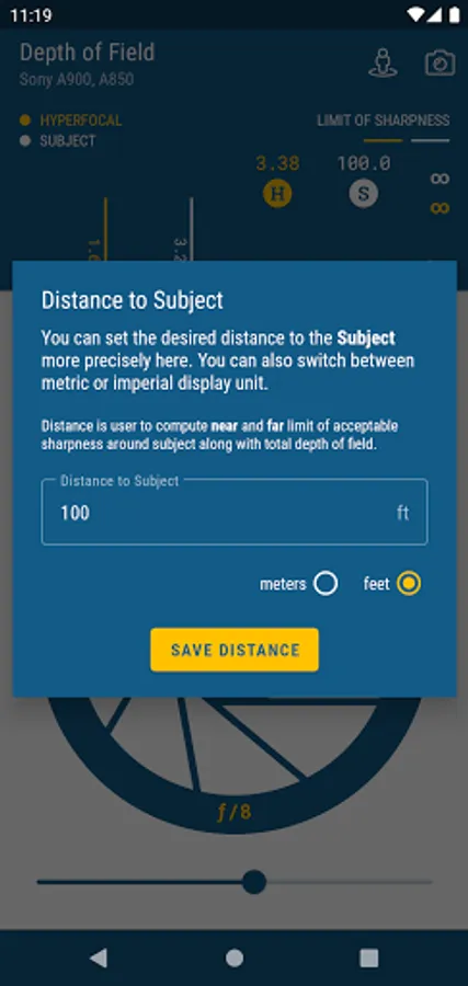 Hyperfocal distance is the lowest Subject distance for a given camera setting (aperture, focal length) for which Depth of Field extends to infinity.