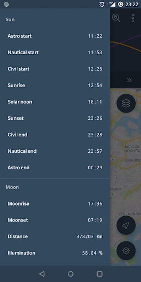 • Sunrise, Moonrise, Sunset and Moonset time and azimuth