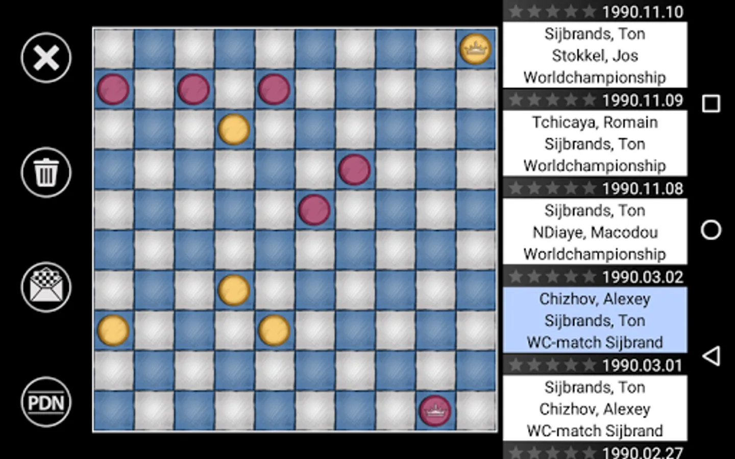 Build your games database by importing PDN files or by saving your favorite games. Find your games quickly thanks to the preview tool.