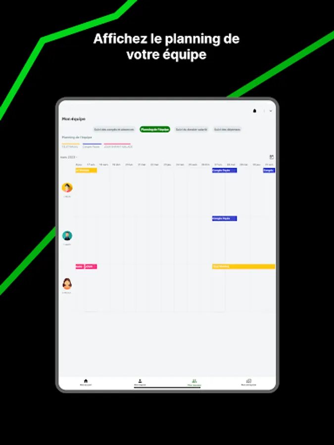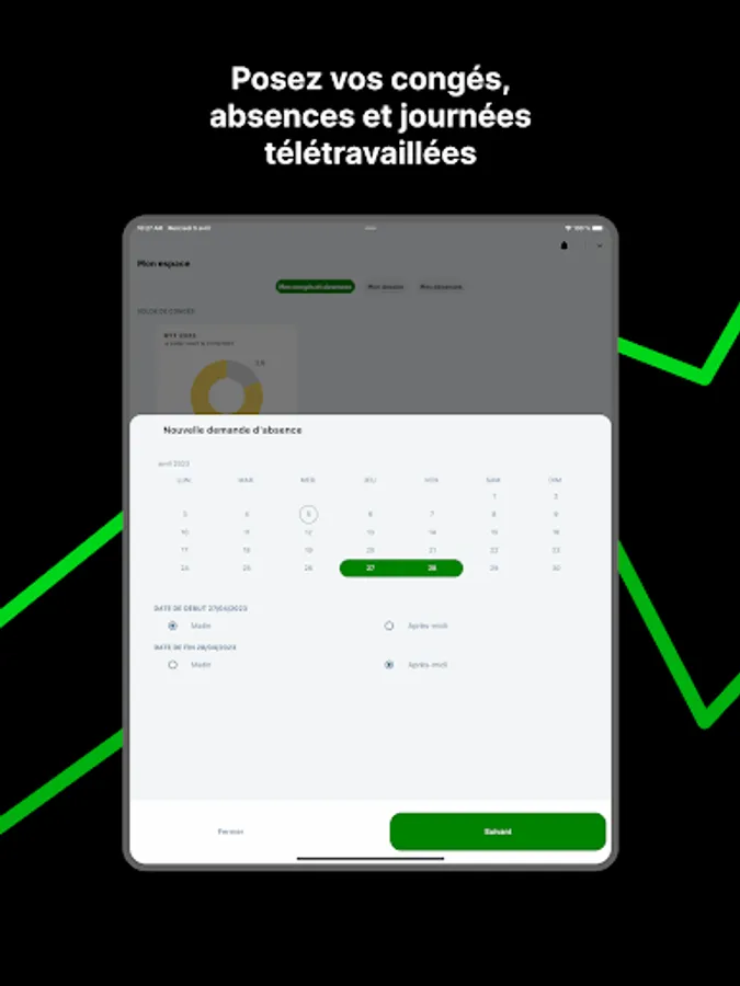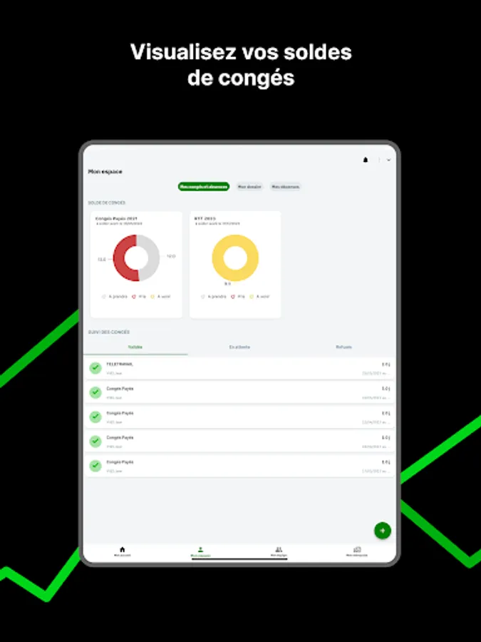 Manage your leave and absence requests, your counter balances, control and automatic calculation everywhere with you.