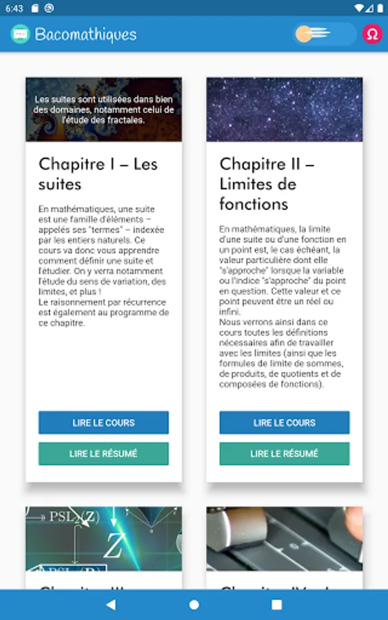 "Bac-o-math-iques" (or more simply Bacomathiques) is a small application (but also a website) that contains everything you need to revise your math in peace from Première to Terminale! Whether you are looking to pass your Baccalaureate or simply want to revise your course: everything is possible and everything is free.
