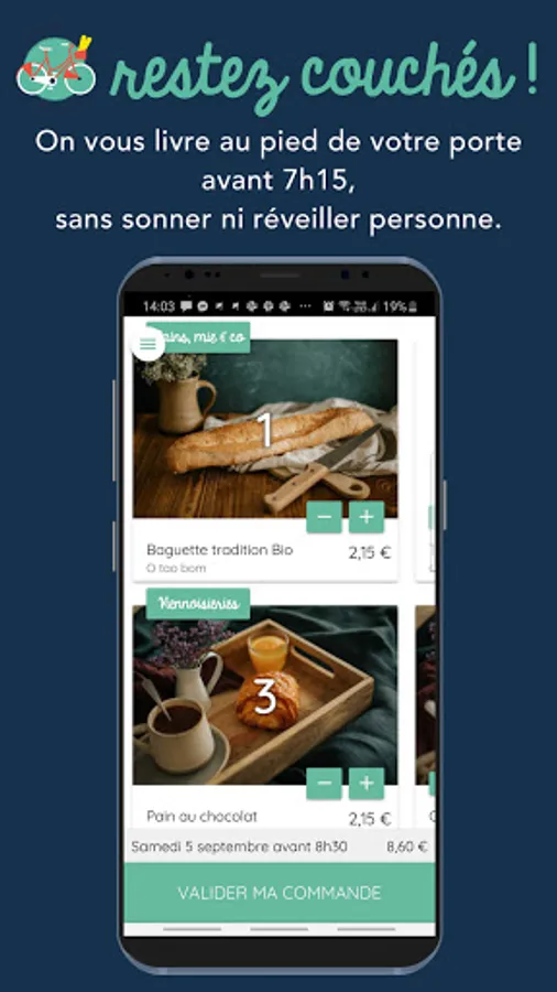 Breads, pastries, jams, fresh juices, dairy products and much more to discover in our shop. And the icing on the cake, our couriers deliver your breakfasts while respecting the planet with our super mobile BàBs which are cargo bikes equipped to face any weather and deliver you the best of artisan bakers at your doorstep.