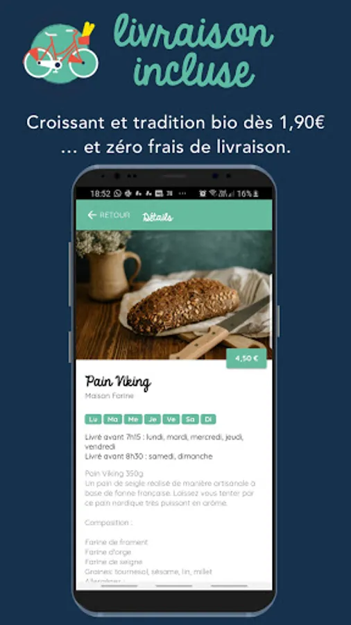 We have selected for you the best artisan bakers in Lyon (in full transparency on the product sheet) as well as the best delicacies that will perfectly accompany your mornings under the duvet. On the app, you can discover the products we offer, local, organic, short circuit: only good and authentic.