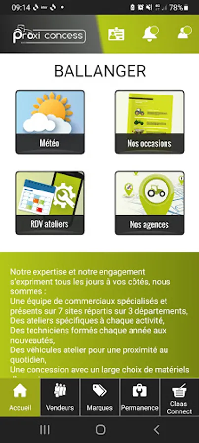 Make appointments, opening hours and services, find the whole universe of BALLANGER in a few clicks on Proxi concession.