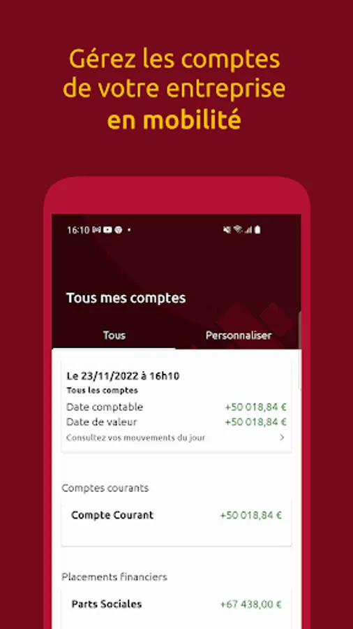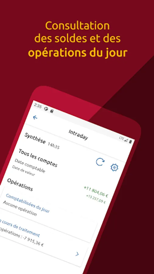 - Consult your accounts in a secure way thanks to your password or your fingerprint