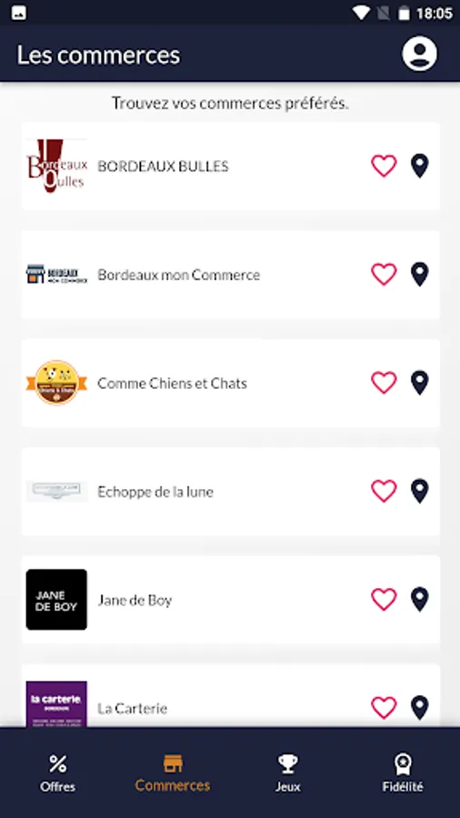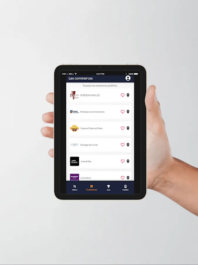 Bordeaux Commerce is the association bringing together all the businesses in Bordeaux, regardless of their type: independents, brands, franchisees, any type of business. It wishes, with the help of its partners, to develop an application that will allow Bordeaux merchants to communicate directly with their customers. It appeared that a simple and effective solution had to be developed: an application that would allow consumers to receive and find out about all the good deals offered by their local merchants. This technology based on previously accepted pushes and geolocation does not necessarily require personal data (outside the game), simply ultimately a prior choice of their centers of interest (food, decoration, services, etc.).