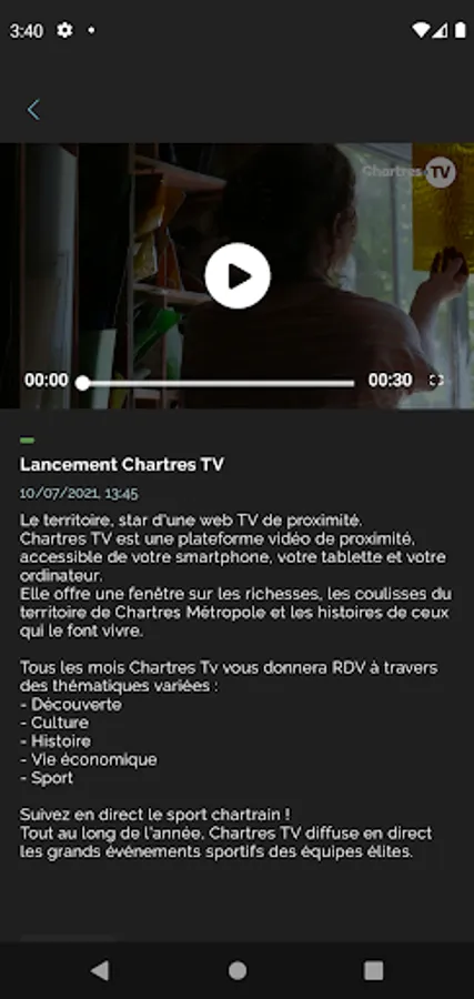 Chartres TV is a local video platform open to the riches, behind the scenes of the Chartres metropolis territory and the stories of those who bring it to life.