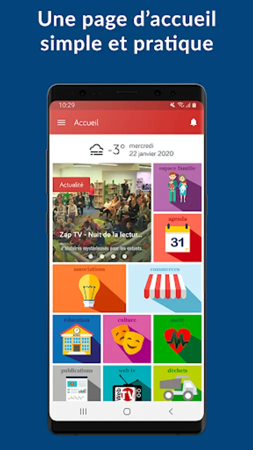 Culture: Inseparable partners of the City, the Theater & Cinema and the Library are always present on the app: contacts, schedules, links ... Everything to stay informed about cultural life on the City.