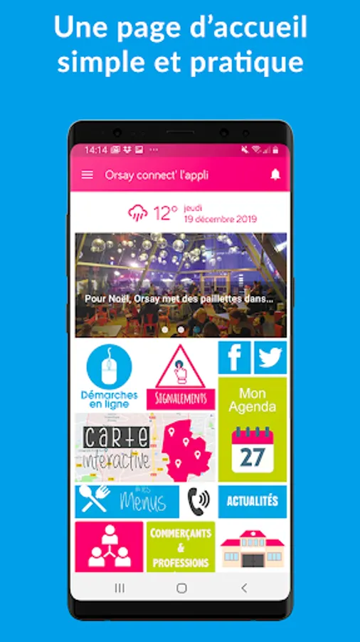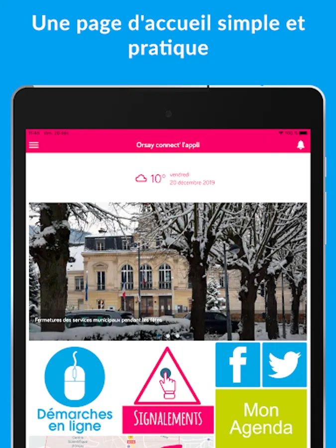 "Orsay connect ', the app" is the whole city at your fingertips! Make your online steps, follow live sports and cultural events, latest news work, browse the schools menus, see the directory of your traders and associations ... and locate them via our map!