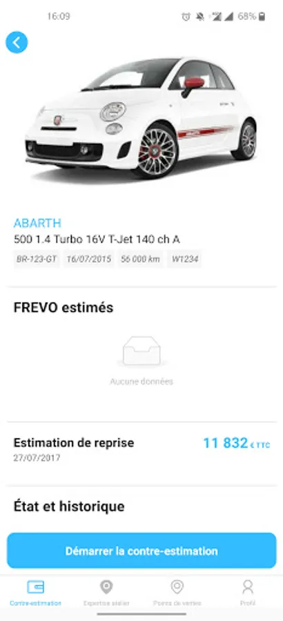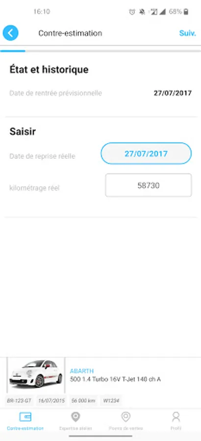 1. Counter-estimate of the vehicle when it enters stock, with comparison of current elements to those observed during the trade-in offer;
